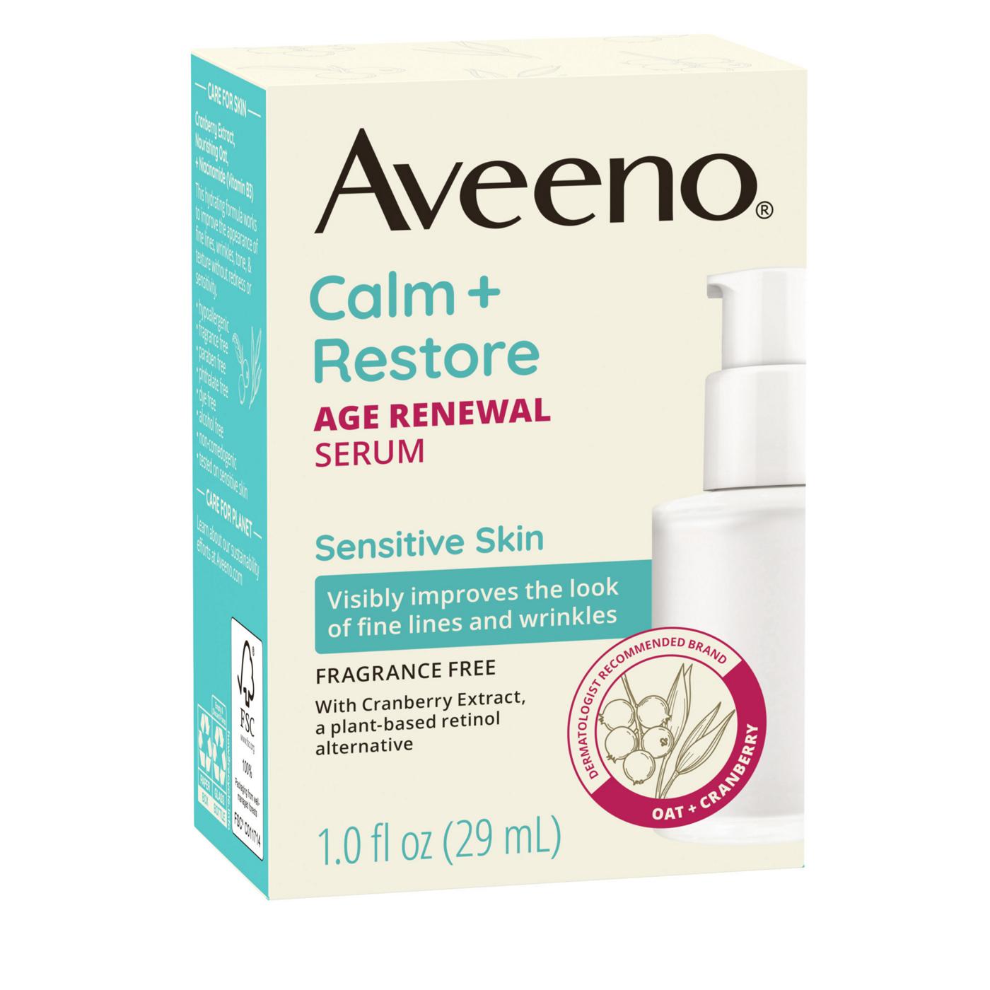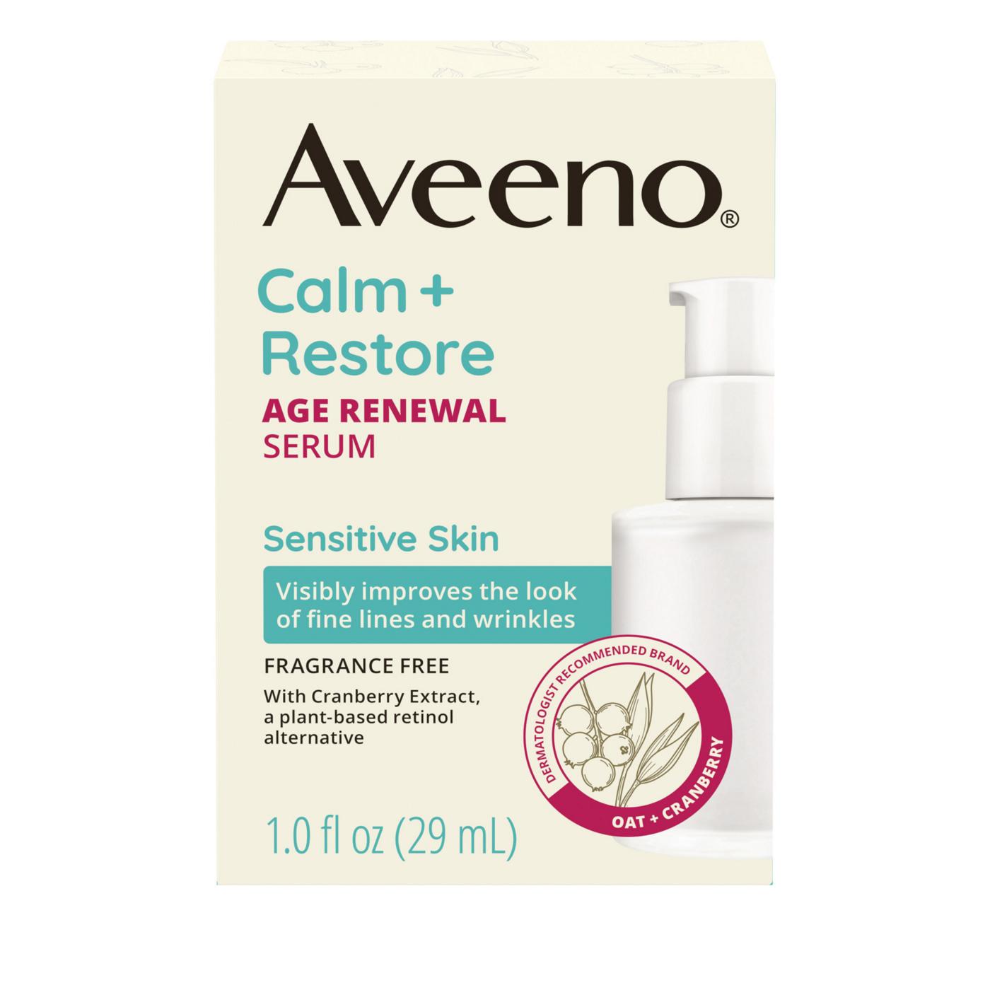 Gently address signs of aging with Aveeno Calm + Restore Age Renewal Serum. This fragrance-free facial serum is formulated with oatmeal to help soothe skin and improve its texture and tone. The lightweight formula absorbs quickly, leaving skin feeling soft and restored.• Designed to target signs of aging on the face• Contains oatmeal to soothe and calm the skin• Fragrance-free formula suitable for sensitive skin• Lightweight serum for daily use