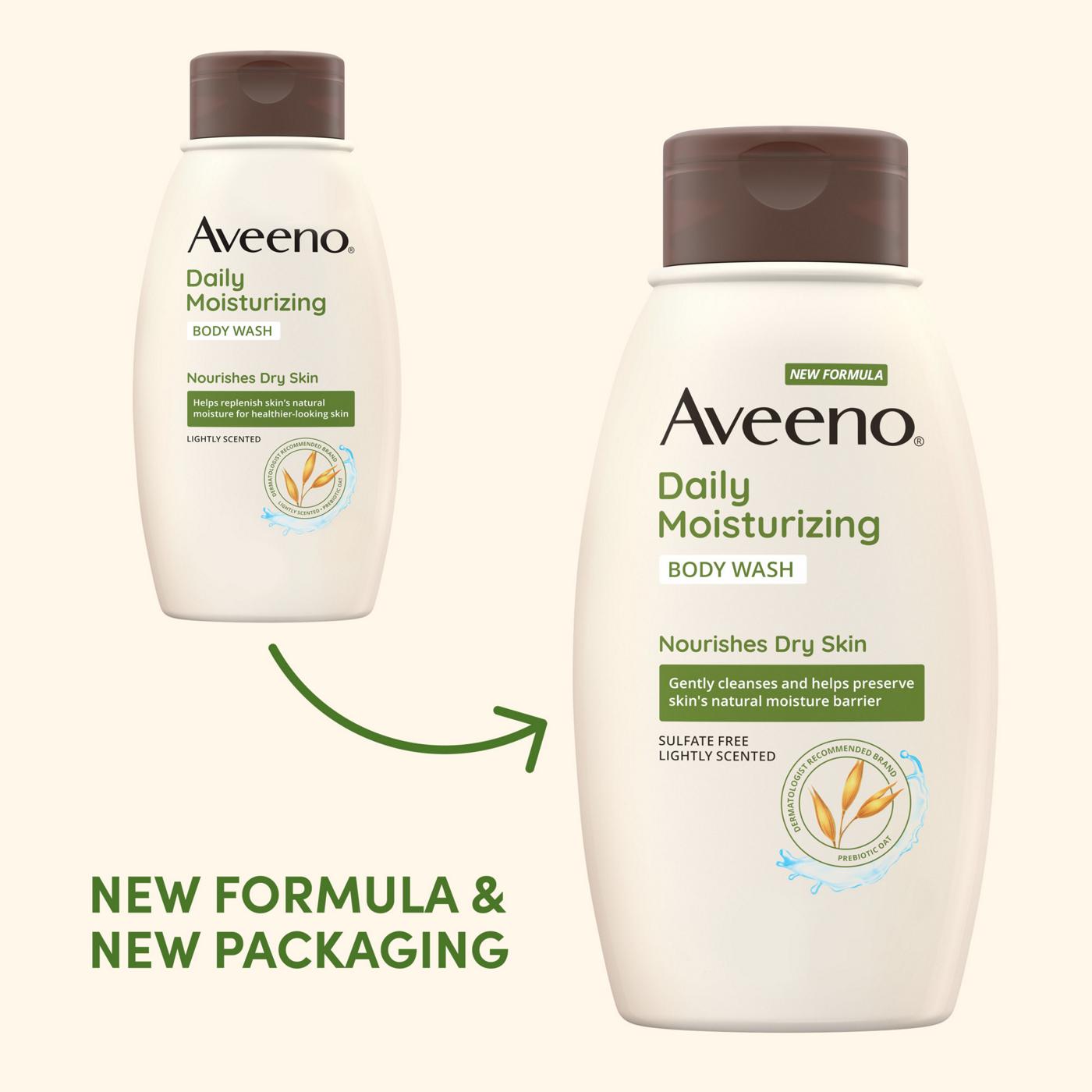 Gently cleanse and replenish your skin's natural moisture with Aveeno Daily Moisturizing Body Wash. This lightly scented formula, from the Aveeno Daily Moisture line, is designed to be mild enough for the whole family to use. It works to leave your skin feeling soft, smooth, and healthy-looking after every shower without stripping away essential moisture.