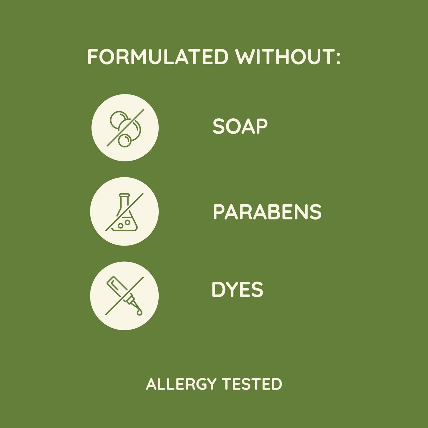 Water, Glycerin, Cocamidopropyl Betaine, Sodium Laureth Sulfate, Avena Sativa (Oat) Kernel Flour, Citric Acid, Sodium Chloride, Sodium Benzoate, Guar Hydroxypropyltrimonium Chloride, Fragrance, Glycol Distearate, Polyquaternium-10, Tetrasodium EDTA, Myristyl Alcohol, Avena Sativa (Oat) Kernel Oil, Avena Sativa (Oat) Kernel Extract, Sodium Hydroxide.