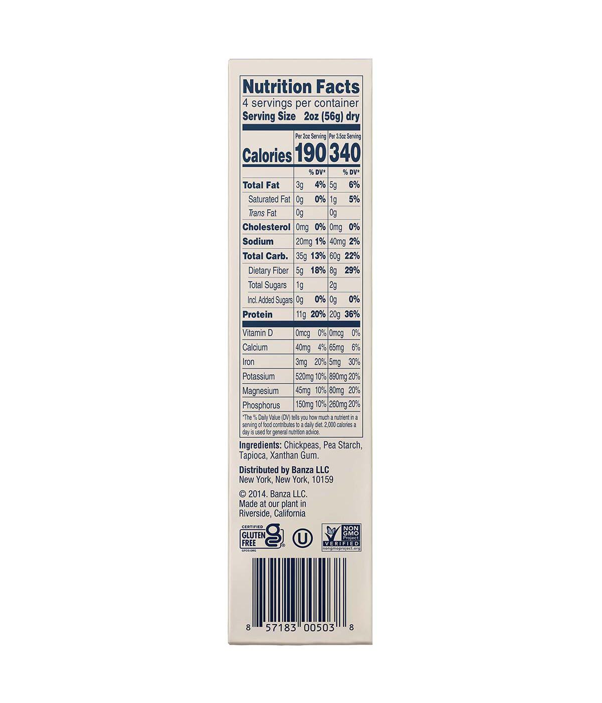 Banza chickpea pasta is a high protein, lower carb, gluten free alternative to traditional pasta. Each serving has nearly 2X the protein, 3X the fiber, and 30% fewer net carbs of traditional pasta. Banza also tastes, looks and cooks more like traditional pasta than other alternative pastas, including lentil pasta, quinoa pasta, and whole wheat pasta. Try substituting Banza for an easy and healthy family meal.