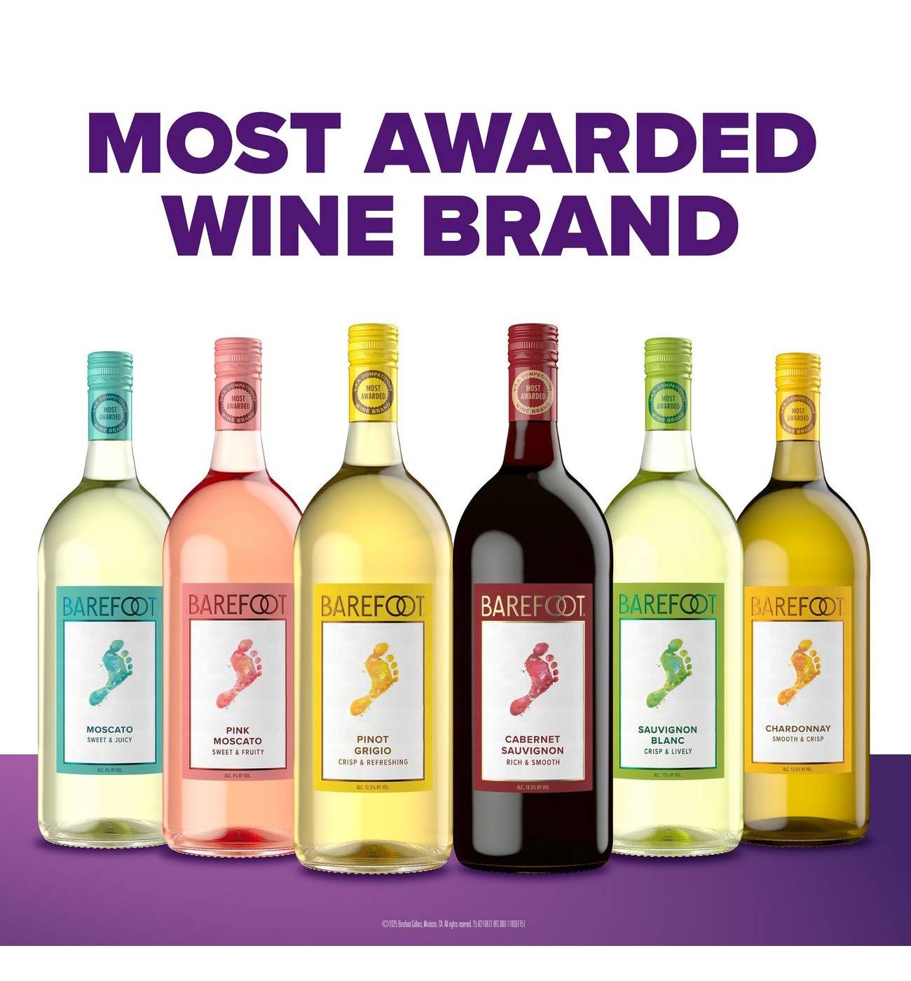 Barefoot Chardonnay White Wine features tempting notes of fresh green apple and sweet peach with hints of honey and vanilla in a large 1.5 L bottle. With a smooth and crisp finish, this medium bodied California wine comes in a larger 1.5 L wine bottle that contains two 750 mL bottles of wine, making it perfect for entertaining at an outdoor party or enjoying with a group of friends. This Chardonnay wine comes from Barefoot, the most awarded wine brand in US competitions. Let's get Barefoot.