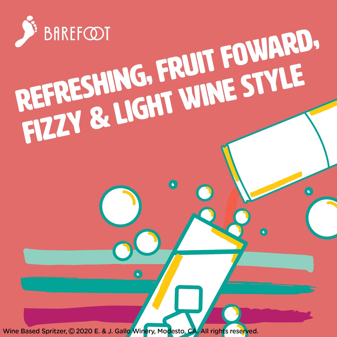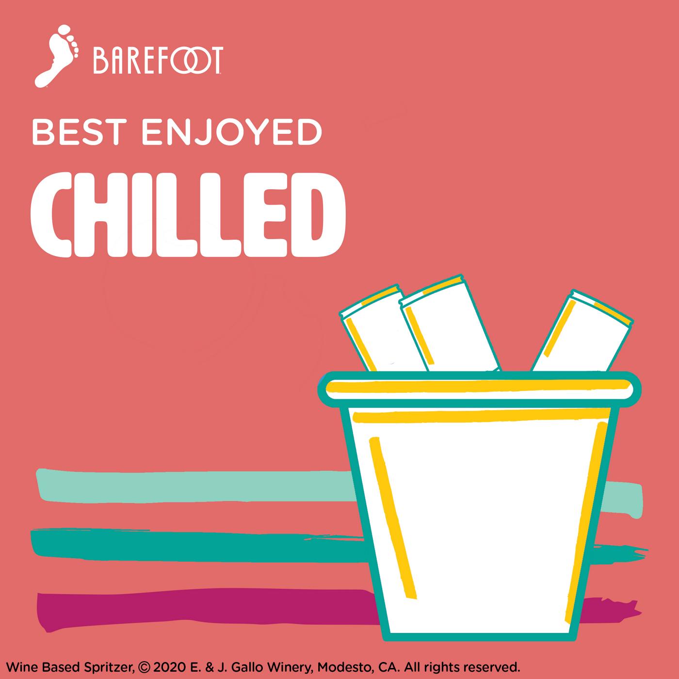 Barefoot Rosé Pink Wine Spritzer delivers a refreshing medley of juicy peaches and zesty mandarin oranges all in the convenience of a can. A blend of Grenache and Moscato, this slightly sweet blush wine-based spritzer bursts with fruity notes of sweet raspberries and red cherries. Ideal for outdoors, each pack contains four perfectly portable single serve cans. This light bodied canned wine spritzer with a lower alcohol content is perfect for serving at a pool party, summer picnic or backyard barbecue. Enjoy this semi sweet wine in a can chilled or over ice. This Rose wine spritzer comes from Barefoot, the most awarded wine brand in US competitions. Let's get Barefoot.