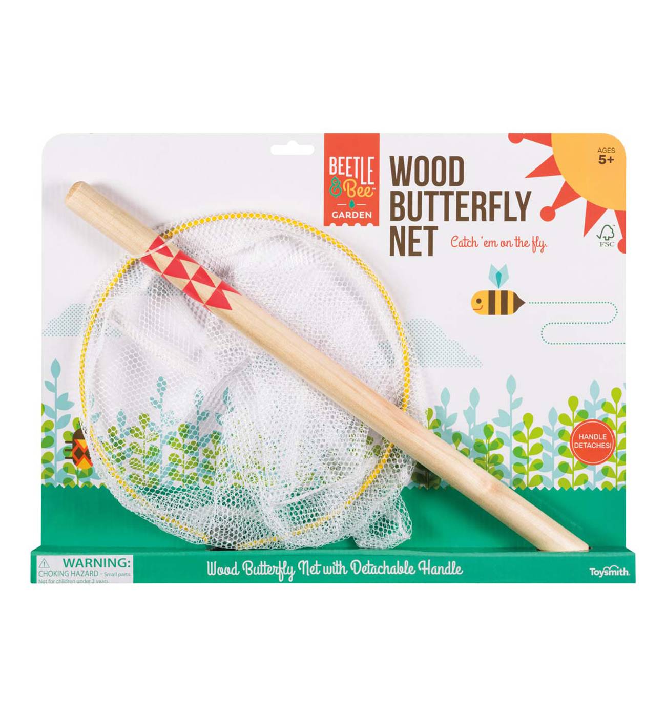 Catch 'em on the fly! A beautiful wood butterfly net, featuring a detachable handle. Easy to store and take with you.