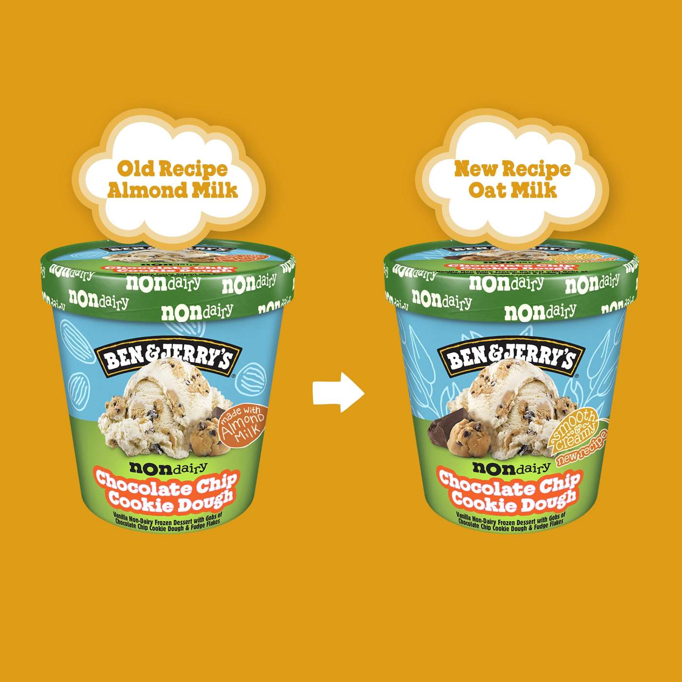 • Ben & Jerry's Non-Dairy Frozen Dessert certified vegan pint flavors have a NEW smooth & creamy recipe made with Oat Milk! For a limited time, you may receive Almond Milk or Oat Milk based on stock. Please refer to packaging for allergen information