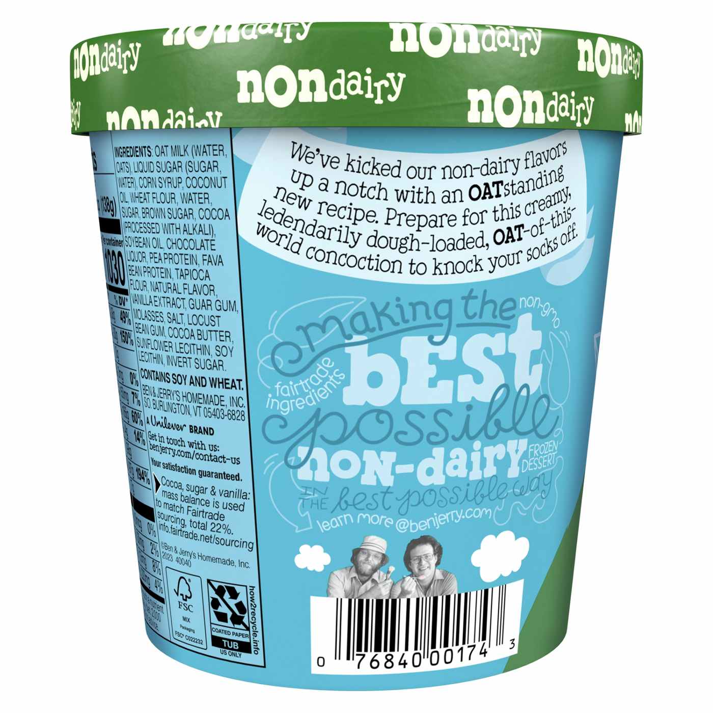 • Ben & Jerry's Chocolate Chip Cookie Dough vanilla Non-Dairy Frozen Dessert and certified vegan pint with gobs of chocolate chip cookie dough and fudge flakes