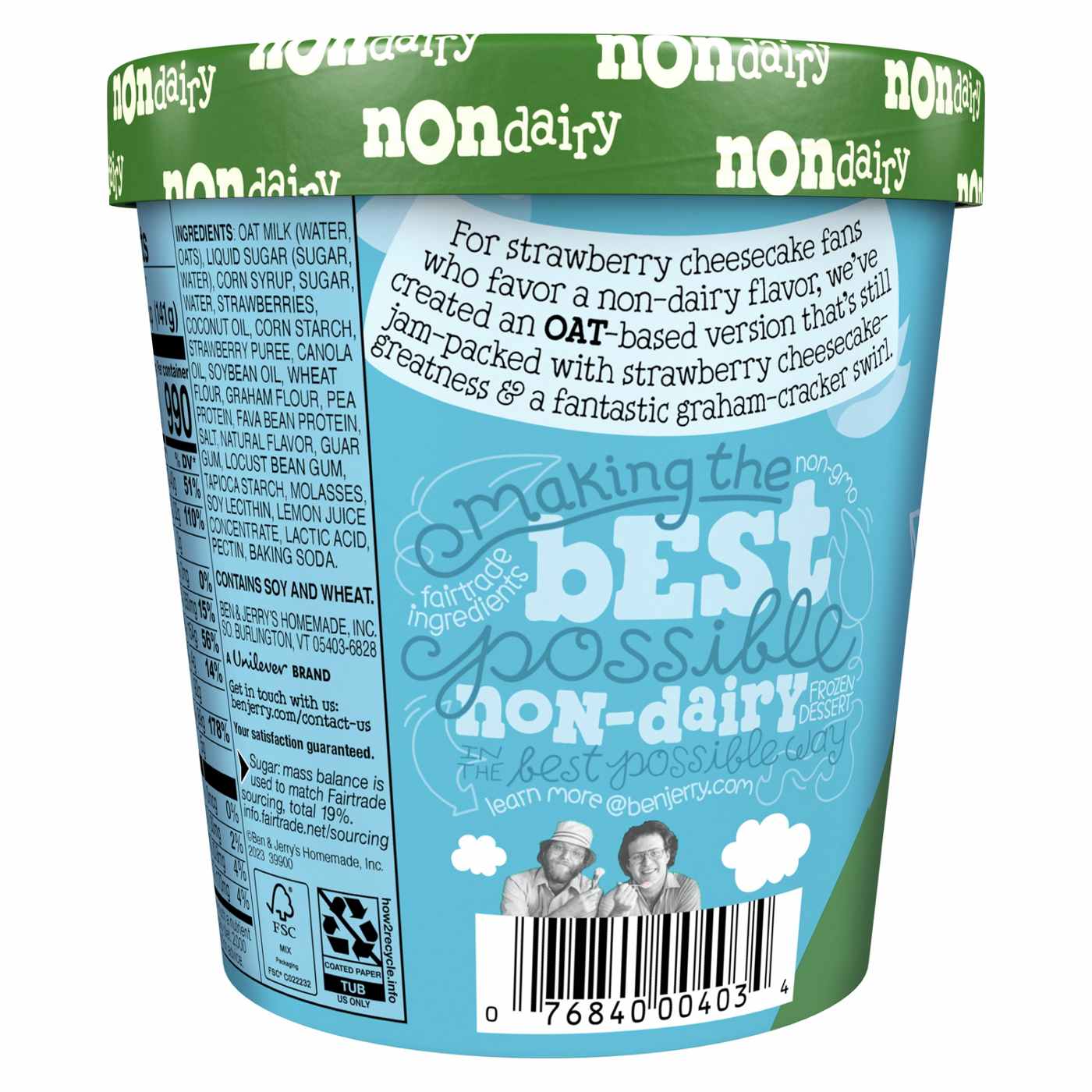 Ben & Jerry's Strawberry Cheezecake Non-Dairy frozen dessert and certified vegan pint offers all the culinary delight of your favorite fruit-topped cheesecake, without the dairy! It's made with oat milk, so it’s 100% vegan and 110% delicious. With strawberry cheesecake non-dairy frozen dessert and thick, decadent graham cracker swirls, it’s a totally titillating treat that might just become your new go-to pint.