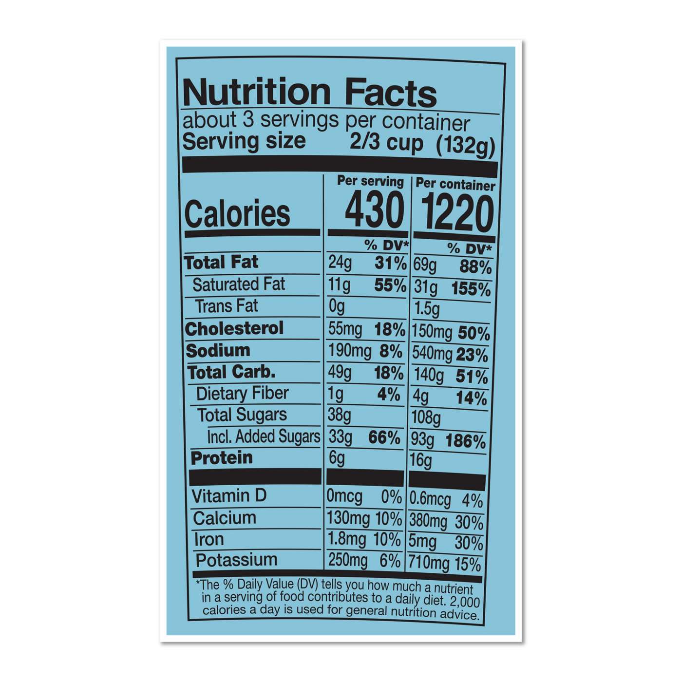 Cream, Skim Milk, Sugar, Liquid Sugar (Sugar, Water), Water, Wheat Flour, Soybean Oil, Canola Oil, Cocoa (Processed With Alkali), Coconut Oil, Egg Yolks, Corn Syrup, Milk, Cocoa, Sunflower Oil, Salt, Baking Soda, Natural Flavor, Soy Lecithin, Tapioca Starch, Corn Starch, Butter (Cream, Salt), Guar Gum, Vanilla Extract, Locust Bean Gum, Carrageenan. Contains Egg, Milk, Soy, And WheatAllergens and safety warnings