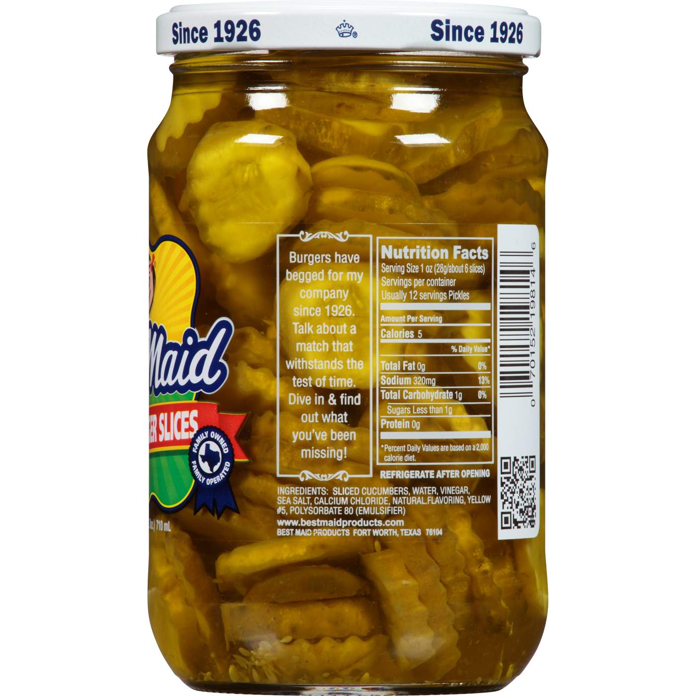 Sliced Cucumbers, Water, Vinegar, Sea Salt, Calcium Chloride, Natural Flavoring, Yellow #5, Polysorbate 80 (Emulsifier).