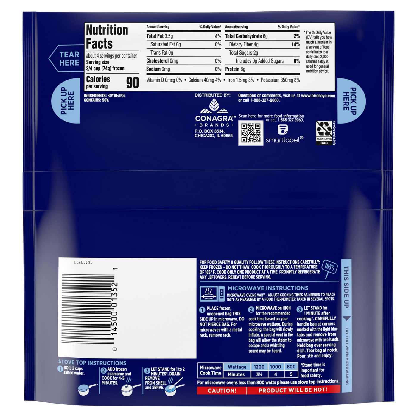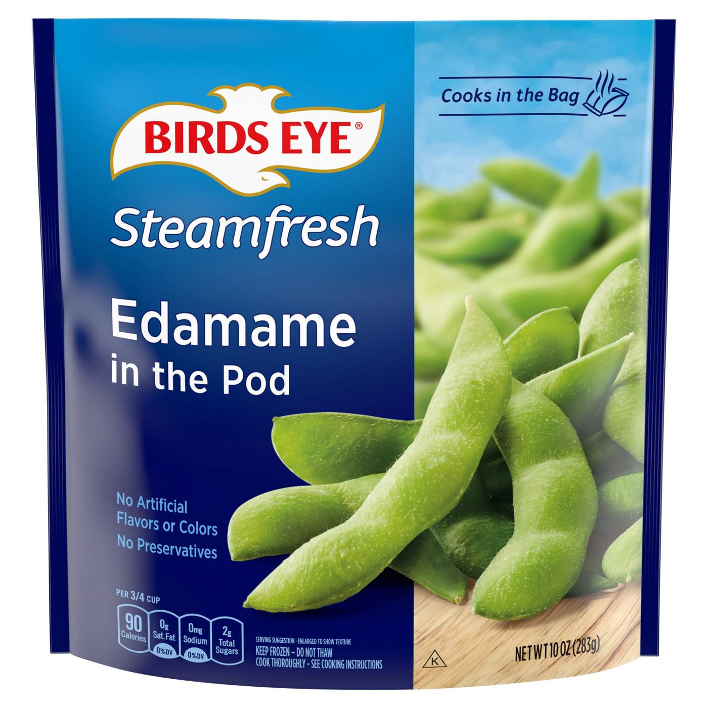 Birds Eye Steamfresh Edamame in the Pod makes it simple and easy to enjoy your vegetables. Picked fresh and frozen to hold onto the flavor, these edamame pods provide your whole family with quality vegetables to round out your meal. These frozen vegetables are made with no artificial flavors, colors or preservatives, leaving you with only the best. Serve this frozen vegetable with steak or chicken for a balanced meal with color. Preparation is easy; microwave right in the bag for up to 5 minutes or add to a pan of boiling water for 5 minutes. Keep this 10 ounce bag of frozen edamame in your freezer until you're ready to serve it. It’s good to eat vegetables, so Birds Eye makes vegetables good to eat.