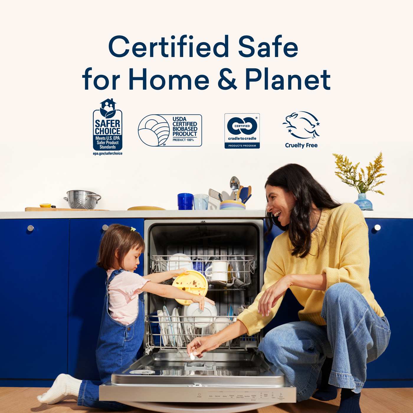 Our top-performing Dishwasher Detergent Tablet is designed to be safer for the whole family and more sustainable than conventional microplastic-wrapped pods– with all the cleaning power and convenience!