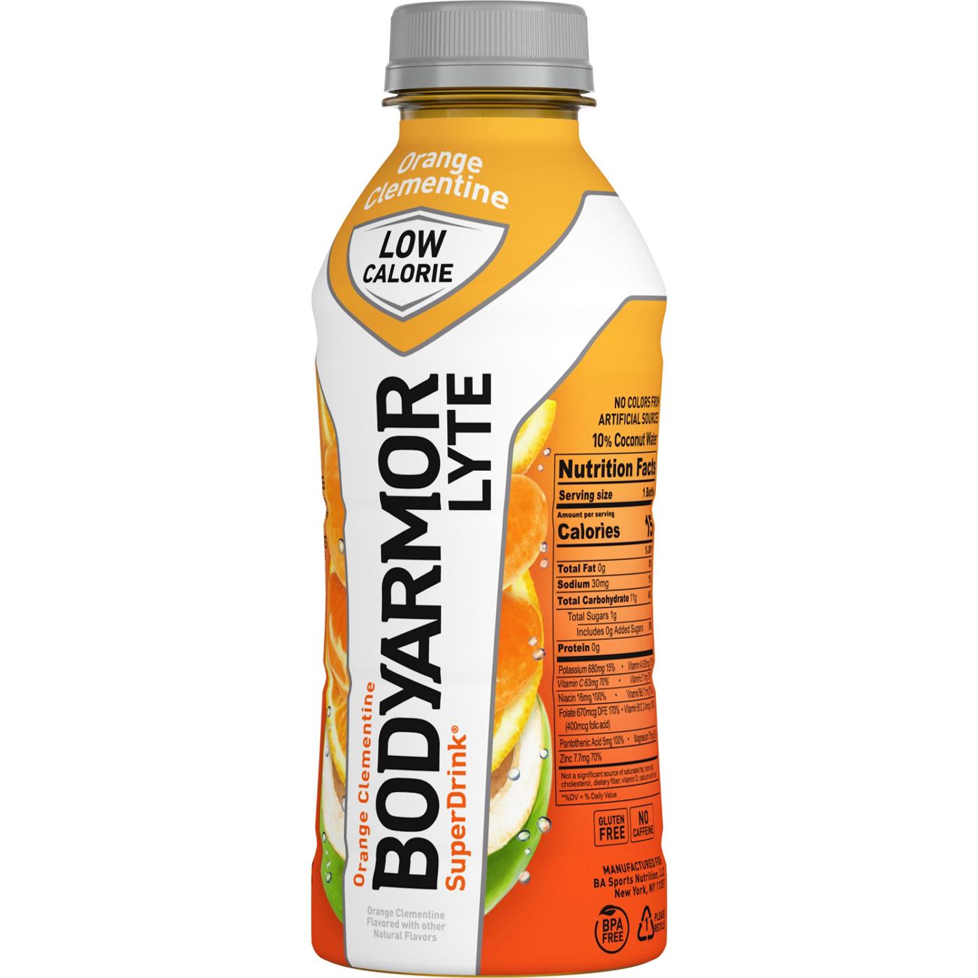 Stay hydrated throughout your day with BODYARMOR Lyte Sports Drink Orange Clementine. This low-calorie sports drink has no artificial sweeteners, flavors or dyes, ensuring a delicious choice for all-day hydration. Whether you're gearing up for a workout or simply staying active, BODYARMOR Lyte helps provide delicious hydration.BODYARMOR Lyte combines coconut water with potassium-packed electrolytes, delivering essential hydration to support your active lifestyle. Enriched with antioxidants and vitamins, it provides the perfect blend of hydration, making it an ideal choice for pre-workout preparation or post-exercise replenishment. With no colors from artificial sources, you can feel good about every sip.BODYARMOR Lyte Orange Clementine is a functional beverage that goes beyond traditional sports drinks. Experience the hydration drink that offers a low-calorie option with no added sugar for those seeking hydration without compromise. Trust BODYARMOR Lyte to keep you refreshed and revitalized, supporting your journey toward a more active and balanced life.