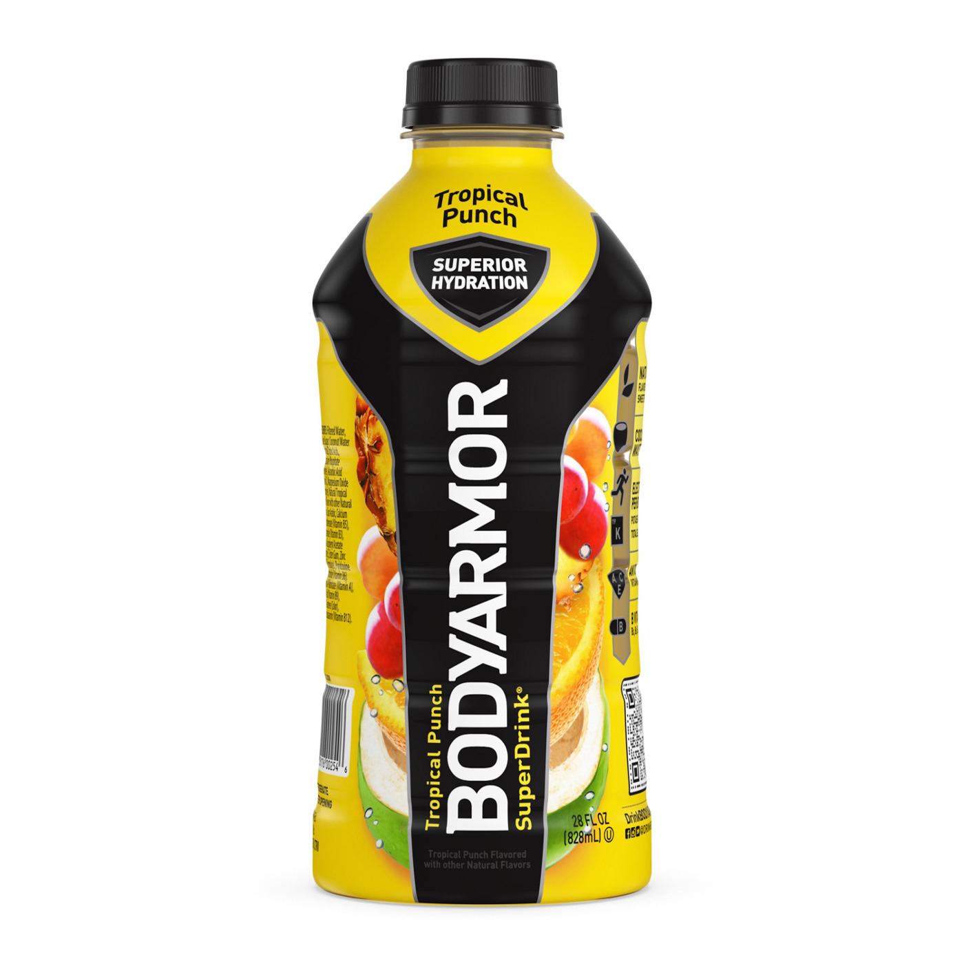 BODYARMOR Sports Drink Tropical Punch isn't just any electrolyte drink; it's made with potassium-packed electrolytes and antioxidants. It's the real hydration you need to face any challenge. No artificial sweeteners, flavors or dyes, just real hydration and a burst of delicious flavor.From pre-workout on, this hydrating sports drink is designed to help you take on your day. It's not just about quenching your thirst — it's about supporting you with every gulp. BODYARMOR Sports Drinks are made with coconut water to boost flavor, making sure you stay refreshed and ready to crush your next challenge. This is the sports drink to help you achieve your goals.If you're serious about your performance and need a sports drink beverage that works as hard as you do, reach for BODYARMOR Sports Drink Tropical Punch. It's the ultimate sports drink for athletes who demand the best from themselves.