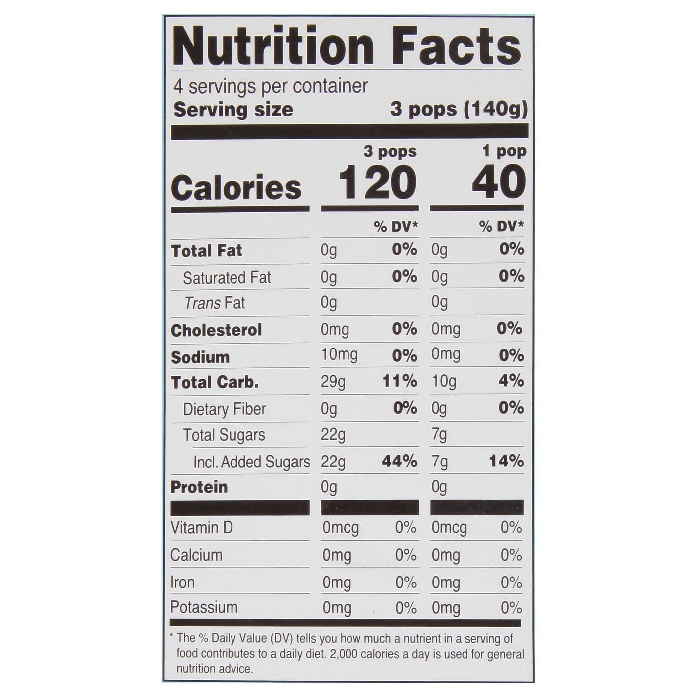 Serving Size1.00 pop- Amount Per ServingCalories40