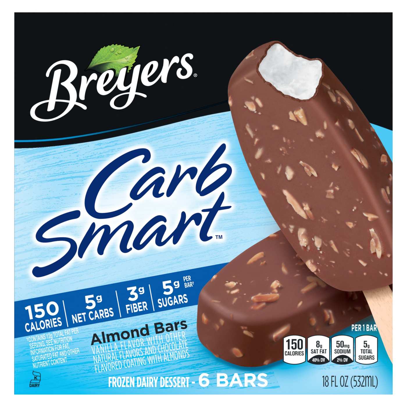 Carb-watchers, this frozen treat is for you! Breyers CarbSmart Almond Bars are frozen dairy desserts with 5g net carbs per serving.
