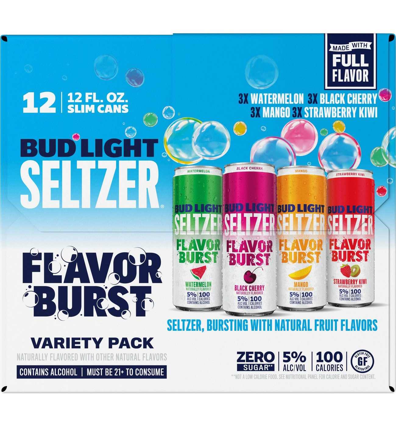 • 12 pack of 12 fl oz slim cans of Bud Light Seltzer Variety Pack