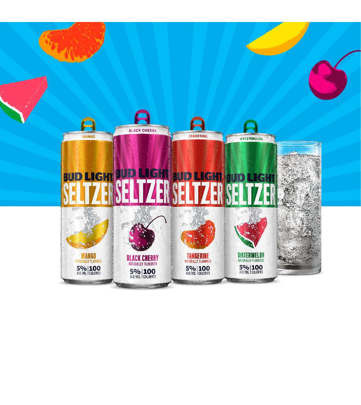 Bud Light Seltzer is an easy drinking hard seltzer with a hint of delicious fruit flavor. This variety pack includes Mango, Black Cherry, strawberry kiwi and Watermelon flavored hard seltzers. These hard seltzer drinks are made with a unique 5 step filtration process to ensure a clean, refreshing finish with no lingering aftertaste. Thanks to natural carbonation and quality ingredients like sparkling water, real cane sugar and natural fruit flavor, these hard fruit drinks are light, bubbly and made to deliver the most refreshing taste possible. Each serving of Bud Light Seltzer has 100 calories, less than 1 gram of sugar and 2 grams of carbs. These gluten free alcohol drinks have a 5% ABV and are made with no artificial flavors. The slim cans of seltzer are easy to hold, store and transport. Enjoy refreshing fruit alcohol beverages at outdoor gatherings or enjoy a hard flavored seltzer during any occasion.