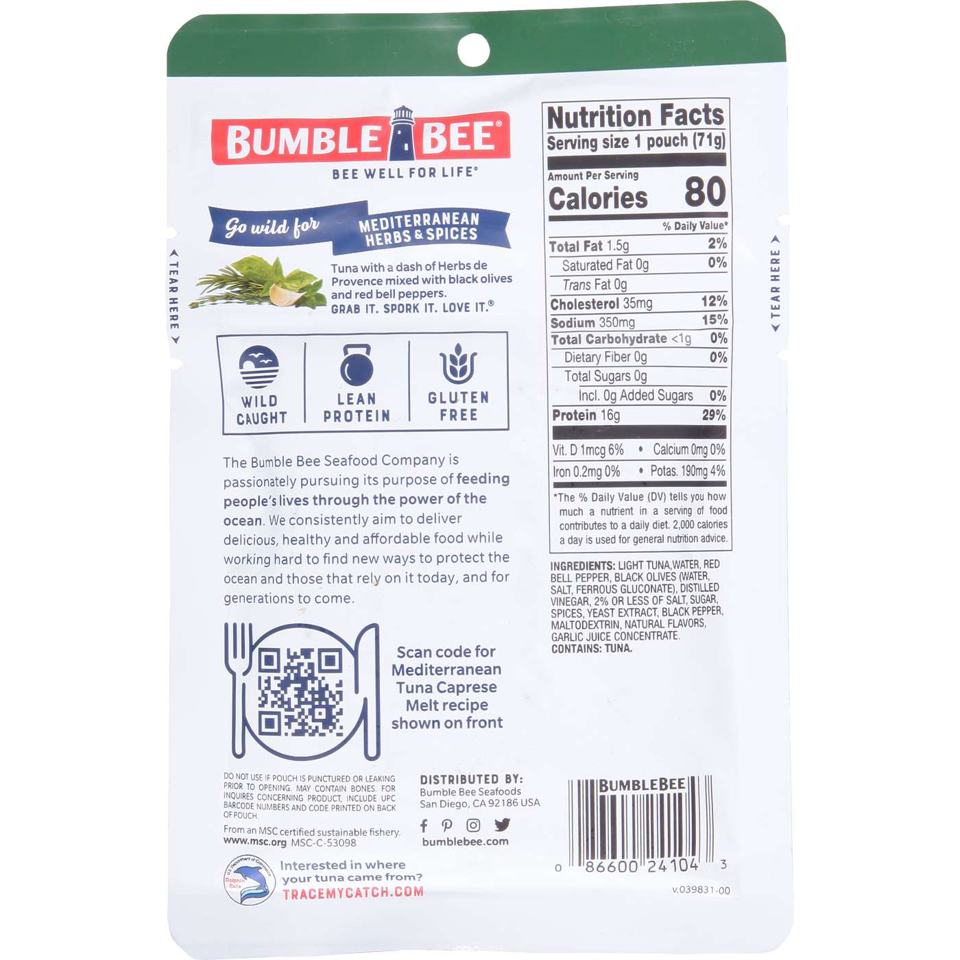 Bumble Bee Wild Caught Tuna Pouch - Mediterranean Herbs & Spice