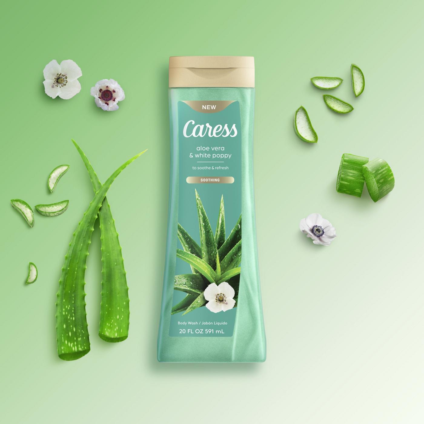 •Convert your shower into a sensorial escape with the refreshing fragrance of Caress Aloe Vera & White Poppy Body Wash