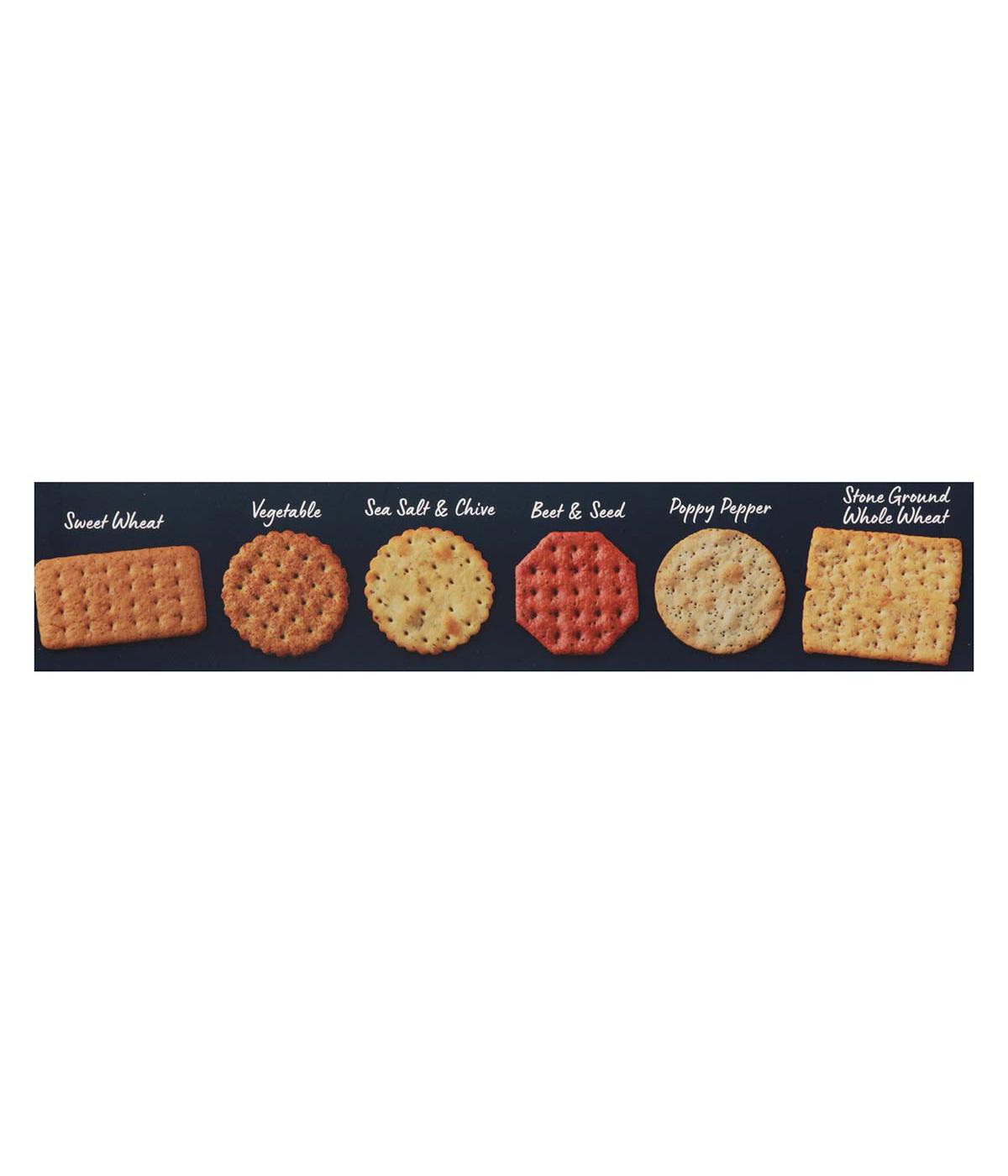 From Central Market, this box of Entertainer's Selection Crackers includes 6 uniquely delicious varieties. Packaged in a reclosable tray for easy serving and storing, they're ready to be topped with all kinds of your favorite soft cheeses and thinly sliced meats. Use them to create a gourmet-quality charcuterie board that lets your guests discover their favorite flavor.