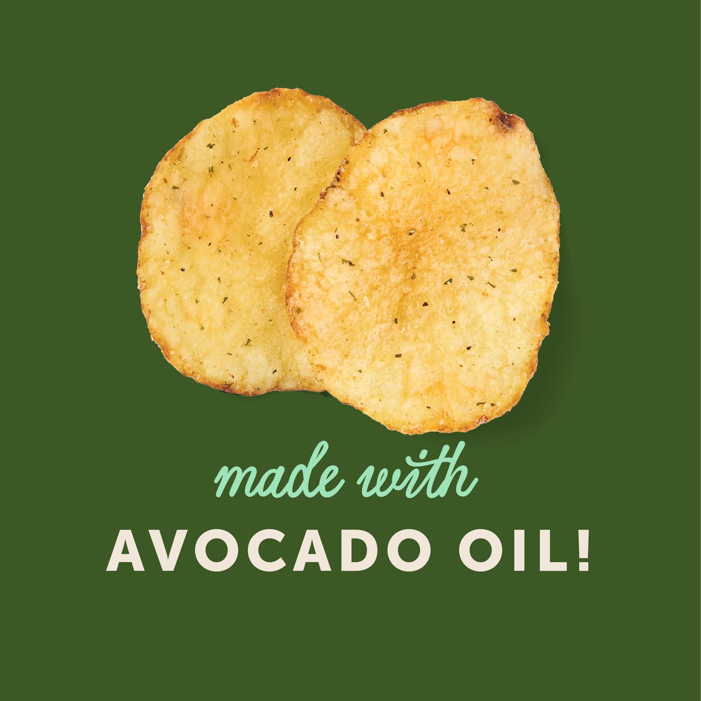 Let the savory, fresh flavor profile of these kettle-cooked potato chips transport you to an idyllic garden in the countryside. Made with 100% avocado oil and seasoned with just the right amount of flavor, these chips elevate your snacktime to a gourmet experience. Try them with your favorite meal, enjoy them on their own, or share them at your next gathering.