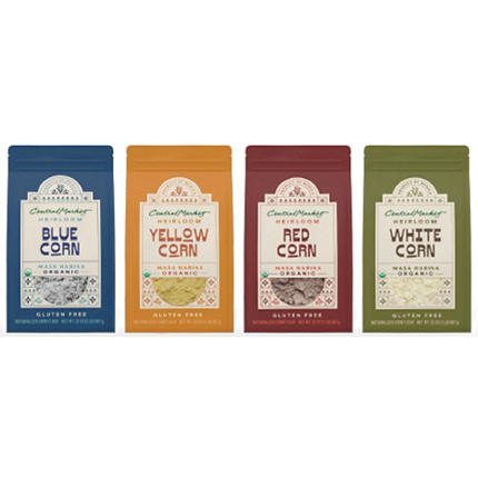 Central Market organic heirloom corn masa harina made from heritage varieties of grains traditionally passed down through generations of farmers and crops that are exclusively non-irrigated and free from agrochemicals, GMOs, or hybrid modifications. Heirloom masa has a nuttier, earthier flavor compared to the more neutral, corn flavor of other masas in the set, and press out to be slightly thicker and coarser in texture. The organic blue corn masa are the go-to for table tortillas across Oaxaca and Mexico City. Light starch density and sweet, grassy flavor profile.