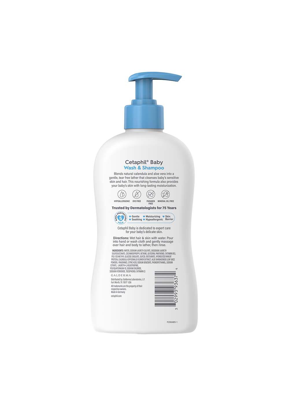 CETAPHIL BABY WASH & SHAMPOO: This tear free 2-in-1 formula blends into a rich lather to gently cleanse your baby's delicate skin and hair leaving it soft and clean
