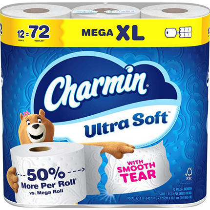 Get irresistible softness with Charmin Ultra Soft Smooth Tear toilet paper. Every roll is crafted with wavy edges that tear so much better vs. the leading USA 1-ply bargain brand, so you can have a smooth, more enjoyable go. And each sheet of Charmin Ultra Soft Smooth Tear toilet paper is 2X more absorbent vs. the leading USA 1-ply bargain brand, so you can use less! We made it MEGA XL in size, so you get MEGA XL value. 1 Charmin Ultra Soft Mega XL Roll equals 6 Regular Rolls, so you can change the roll less often based on the number of sheets in Charmin Regular Roll. Want to save even more time by running back to the store less? Stock up on Charmin toilet paper with our larger count packs! Charmin Ultra Soft Smooth Tear is also 2-ply and designed to be clog-safe and septic-safe. We all go, why not Enjoy The Go with America's favorite toilet paper, based on Total Charmin Brand Sales (Nielsen 2024 Dollar Sales)