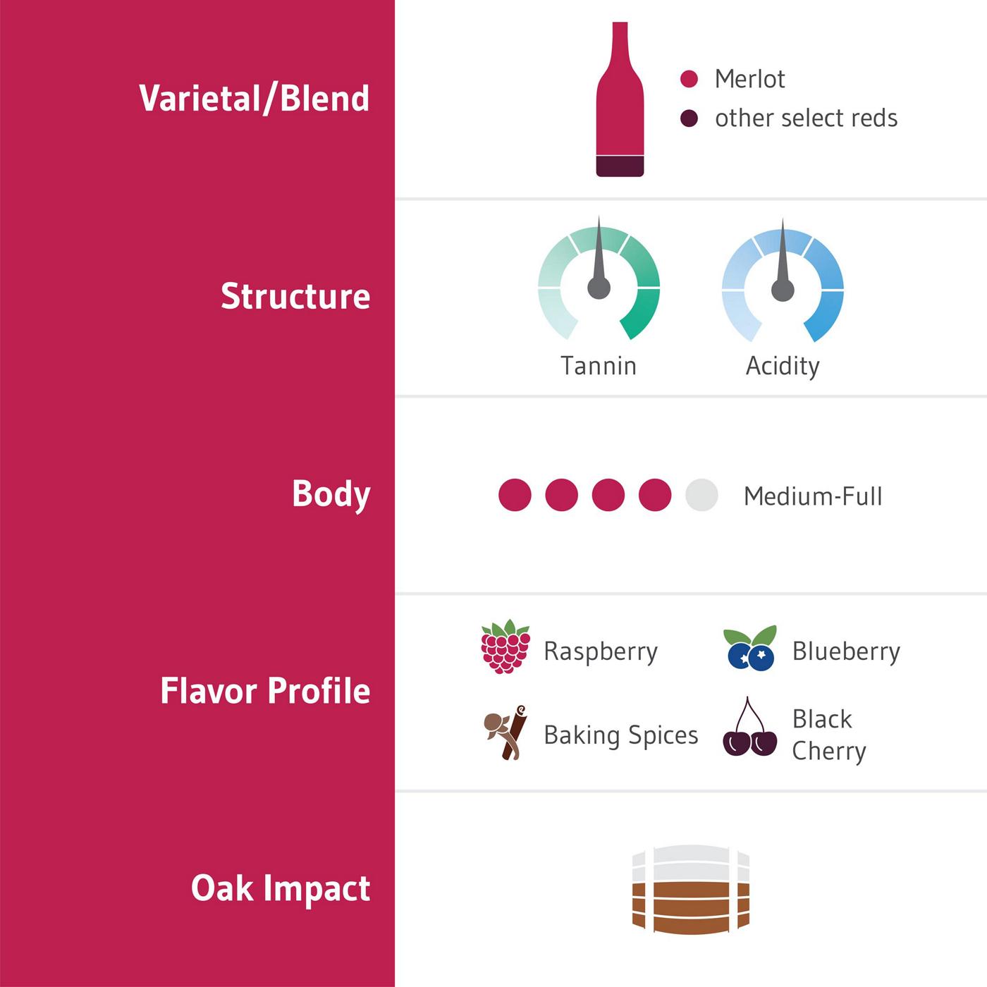 • Varietal: Merlot• Type: Red Wine-Merlot• Origin: United States• Tasting Notes: A captivating blend of mocha, spice, and black cherry aromas harmoniously mingle in this Washington Merlot red wine, accompanied by a velvety richness of flavors, including blueberry and barrel spices, creating a wine of delightful complexity.• Pairings:• Size: 750 mL• ABV: 13.50%