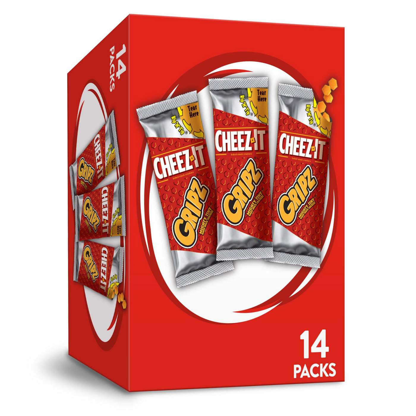 Get a grip on cheesy bliss with mighty tiny Cheez-It Gripz Original baked snack crackers. These mini, munchable crackers are packed with flavor and ignite cheese-induced happiness in every crunchy handful. Each pouch is filled with the real, bold cheese flavor you’d expect from your favorite Cheez-It crackers. Next level munching begins with the easy-open pouch that’s meant to be poured by the handful; Need a direct path to cheesiness? Grip, rip, and tip these crackers for a flow of cheddar crunch. You’ll be snacking like a boss. They’re clutch for no-mess snacking and slide into the side of backpacks for an anytime cheese craving. Pack these crackers in lunch boxes, devour as an afternoon snack, grab some for a study break, or share with your squad after the game (if you’re feeling generous). Forget the boring snacks - Cheez-It Gripz mighty tiny baked snack crackers fill your hand and dreams with a cheesy flavor explosion.• Mighty, tiny, and irresistibly snackable, Cheez-It Gripz crackers are just the right size for munching by the handful; Mega cheese, mighty tiny• Easy-open Rip ‘n’ Tip pouch; Pour in your hand for a no-mess, on-the-go snack that’s bold, crunchy, and cheesy• Made with 100% real cheese; Kosher dairy; Contains wheat, milk, and soy ingredients • Slim pouch fits easily into backpacks and gym bags; Great for a lunch snack attack; Stock your pantry for a quick afterschool bite or share after the game • Includes 1, 10.8oz box containing 12, 0.9oz pouches of ready-to-eat crackers • SNAP and EBT eligible item