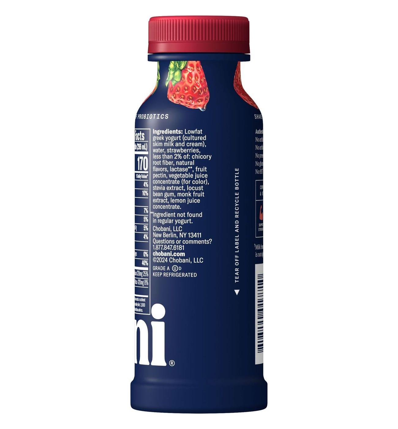 Lowfat Greek Yogurt (Cultured Skim Milk and Cream), Water, Strawberries, Less than 2% of: Chicory Root Fiber, Natural Flavors, Lactase**, Fruit Pectin, Vegetable Juice Concentrate (for Color), Stevia Extract, Locust Bean Gum, Monk Fruit Extract, Lemon Juice Concentrate. ** Ingredient Not Found in Regular Yogurt.