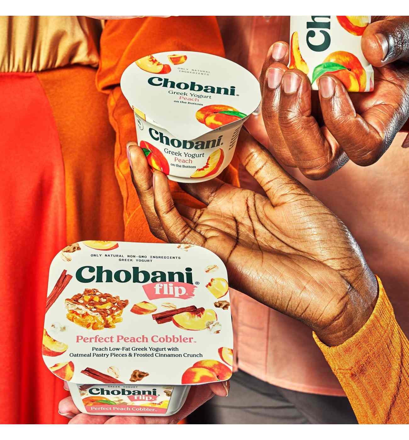 Over 20 flavors of lip-smacking snacking. Our most fun yogurt, Chobani Flip Greek Yogurt is a good source of protein. Perfectly portioned with a side of only natural, crunchy mix-ins. Great for breakfast or as a snack. Peach Chobani Greek Yogurt with oatmeal pastry pieces and frosted cinnamon crunch. Made with only natural ingredients.