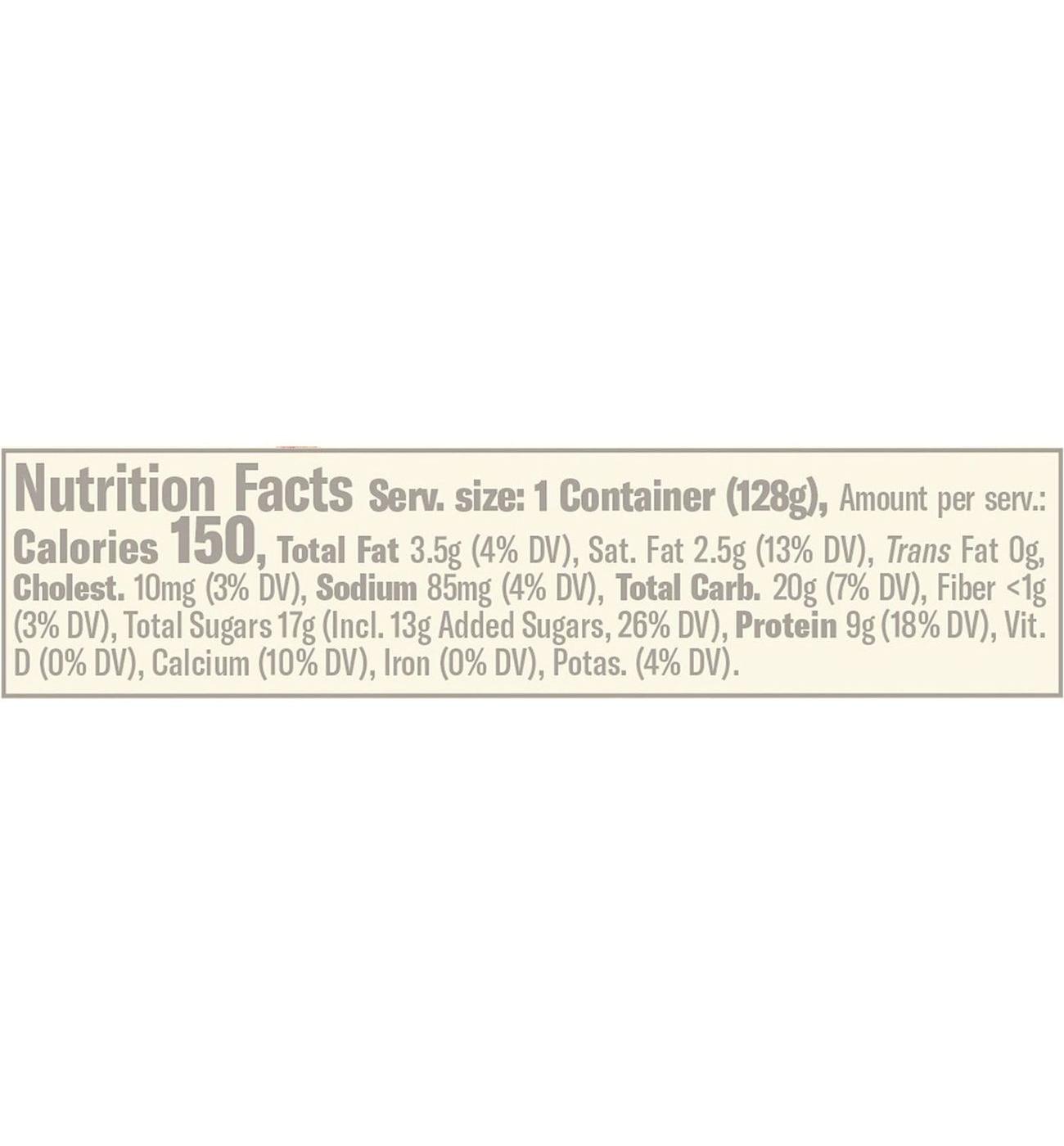 Cultured Lowfat Milk, Cane Sugar, Peaches, Water, Wheat Flour, Vegetable Oils (Palm, Palm Kernel), Oatmeal, Salt, Fruit Pectin, Cinnamon, Fruit Juice Concentrate (for Color), Skim Milk, Natural Flavors, Milk, Raisin Paste, Soy Lecithin, Guar Gum, Baking Soda, Tapioca Syrup, Caramel Color, Lemon Juice Concentrate, Tapioca Flour, 6 Live and Active Cultures: S. Thermophilus, L. Bulgaricus, L. Acidophilus, Bifidus, L. Casei, and L, Rhamnosus.Allergens and safety warnings