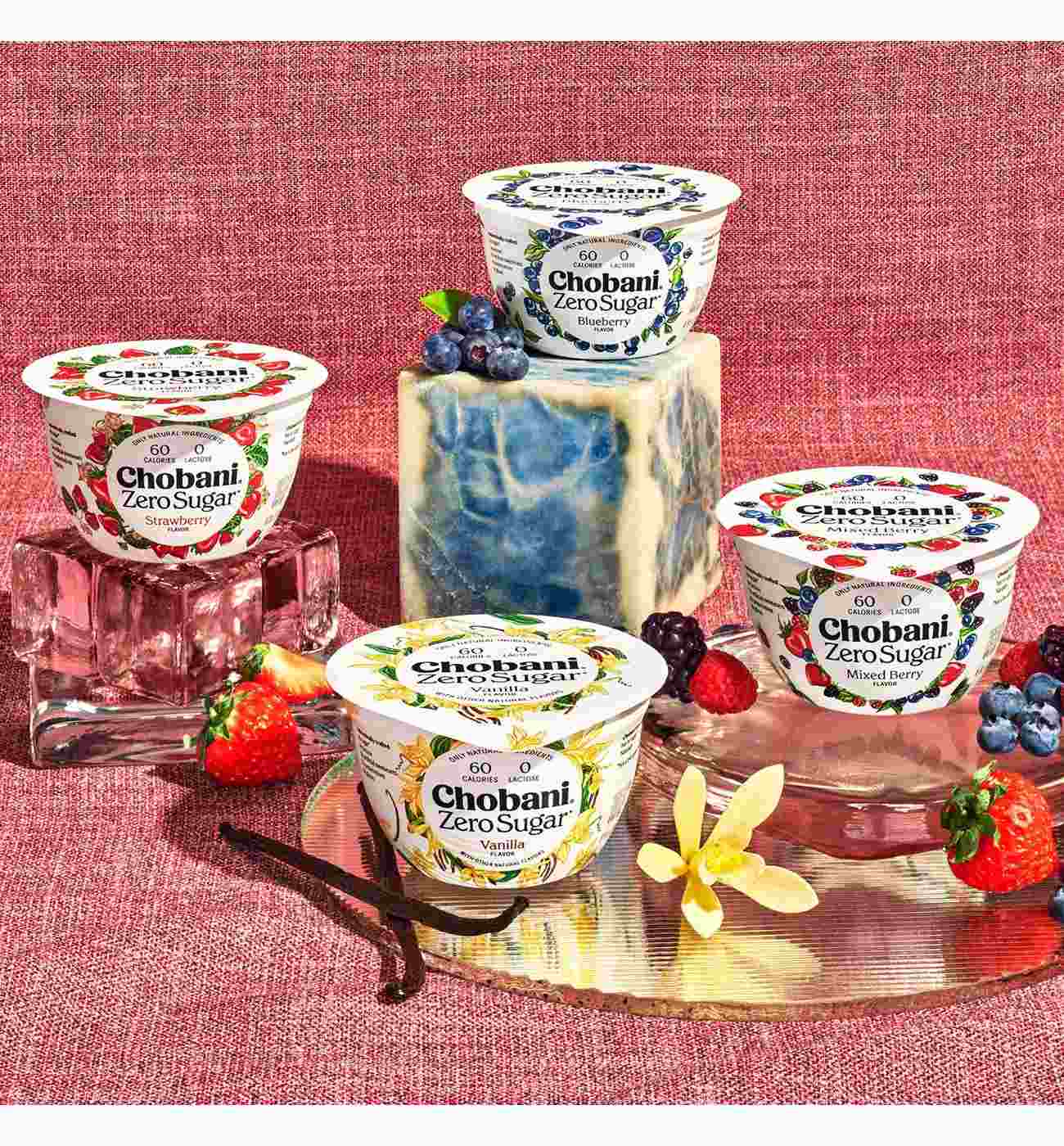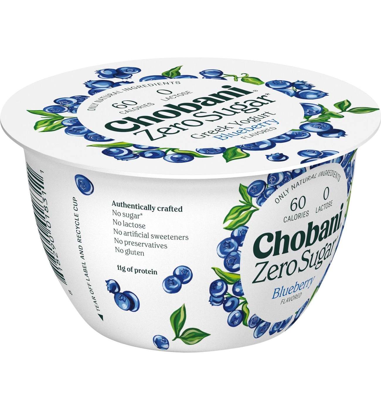 Our first-ever Greek Yogurt with 0g sugar, naturally. In fermentation, yogurt cultures "eat" the sugars found in milk. Sweetened with an only natural, non-GMO sugar substitute, for a full-flavor Greek Yogurt that's under 70 calories. Try Chobani Zero Sugar* Nonfat Greek Yogurt Blueberry with zero sugar*, plenty of protein, and no lactose.