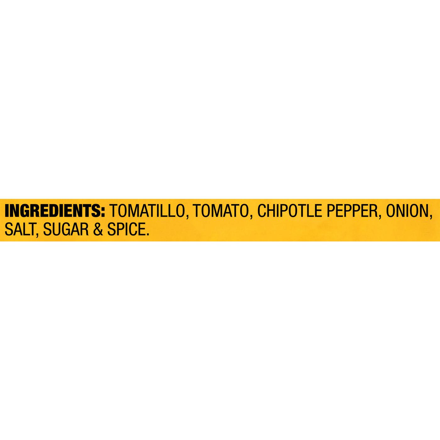 Cholula® Smoky Chipotle Salsa brings a bold and spicy blend of authentic flavors from the heart of Mexico. We start with fresh tomatoes and tomatillos, then fire-roast the tomatoes and combine with chipotle peppers for a salsa that has smoky flavor and a healthy kick of heat.If you love the deep smokiness of our Chipotle Hot Sauce, you'll want to try a jar of our Chipotle Salsa. From tacos and tostadas to chili, burritos, scrambled eggs and frittatas, a spoonful adds rich flavor with bold, craveable heat. We love it on anything barbecued, including chicken, steak, grilled shrimp tacos, and ground beef or veggie burgers. Our salsa is a product of Mexico, where the Cholula heritage is passed down through generations of flavor and where friends and family say "more, por favor!”- Smoky Chipotle Salsa is made with fire-roasted tomatoes, tomatillos and chipotle peppers- Spicy-hot salsa that’s ideal for taco fiestas and game day parties- The perfect dip for tortilla chips- Adds authentic Mexican flavor to everything from tostadas and burritos to BBQ chicken and mole sauce- From Cholula, the trusted brand with the hot sauce from Mexico