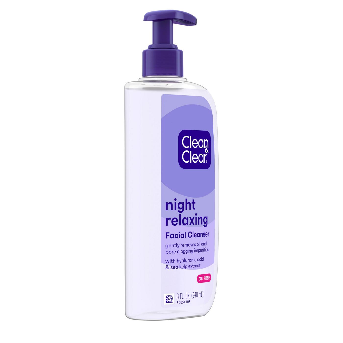 Wash away the day's dirt and oil with Clean & Clear Night Relaxing Deep Cleaning Face Wash. This oil-free formula provides a deep, soothing clean as part of your nightly skincare routine. Made with hyaluronic acid and sea kelp extract, it helps to relax your senses while addressing acne concerns.• Deep cleaning, oil-free formula for nightly use• Helps remove pore-clogging dirt and oil• Formulated with hyaluronic acid to hydrate skin• Contains sea kelp extract for a soothing, relaxing clean