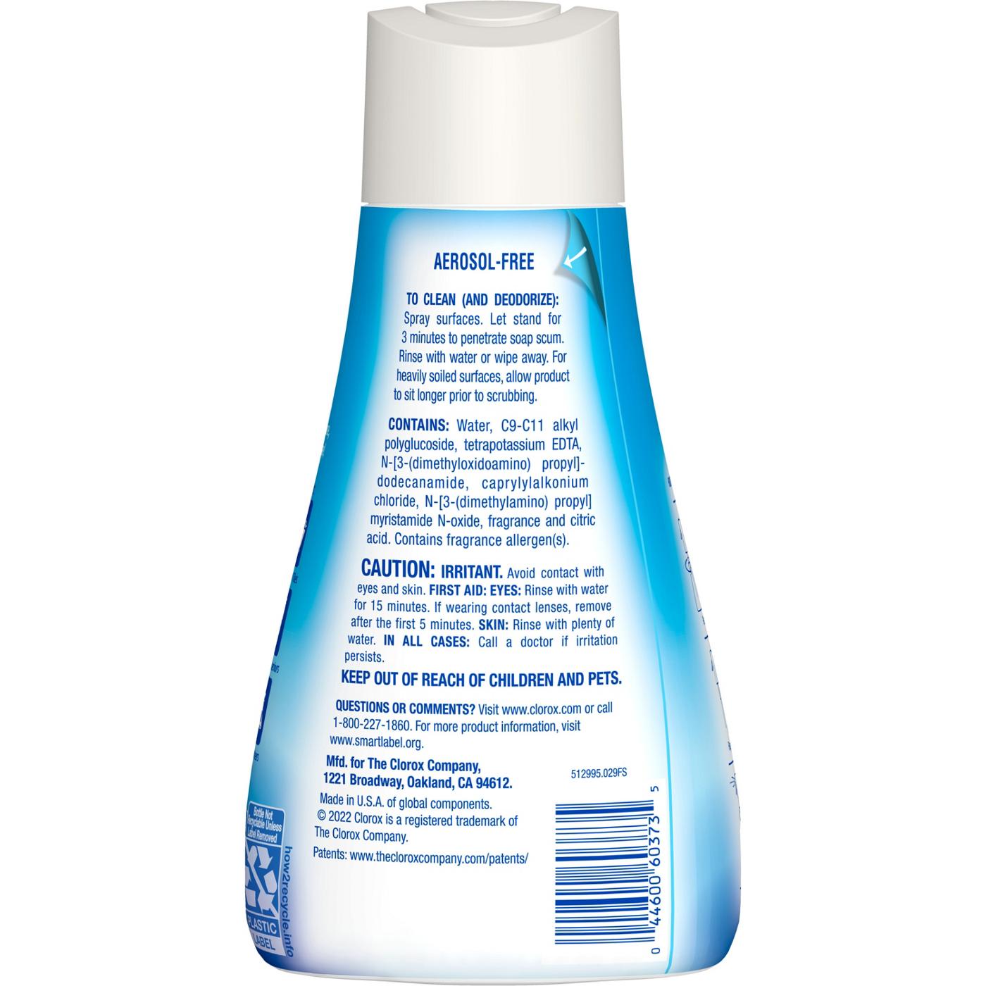 Clorox® Bathroom Ultra Foamer™ makes it easy to clean cracks, corners and tight spots – just spray, rinse and walk away.- SPRAY, RINSE, WALK AWAY: This Clorox® Bathroom Ultra Foamer™ makes it easy to clean cracks, corners and tight spots – just spray, rinse and walk away; packaging may vary- REMOVES 100% OF SOAP SCUM: Rely on Clorox® Bathroom Ultra Foamer™ to remove 100% of soap scum, doing all the hard cleaning work for you- AEROSOL FREE: Clorox® Bathroom Ultra Foamer™ is a great choice with its innovative aerosol free design and the reusable trigger, which means less plastic- MULTI-USE BATHROOM CLEANER: Use Clorox® Bathroom Ultra Foamer™ on surfaces in your bathroom including tubs, glazed tiles, toilet bowl exteriors, sinks and counters- EASY TO USE: The easy-to-use foaming trigger can be reused, helping you to reduce plastic – simply remove the trigger (not included), replace onto the refill bottle, and you’re ready to clean