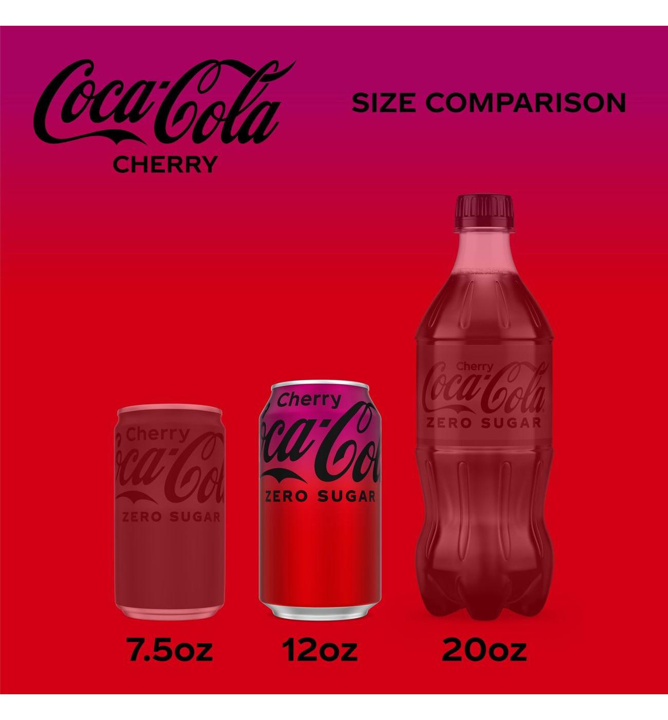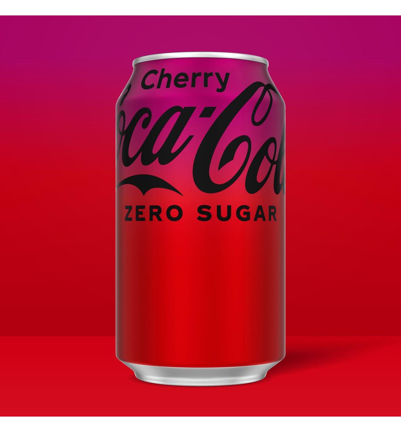 Coca-Cola Cherry Zero is where smooth, Coca-Cola flavor meets a bold cherry twist with zero sugar and zero calories. It's the same Coca-Cola taste you love, now layered with a burst of cherry flavor that's unapologetically refreshing. A flavored soda that hits all the right notes, it's the ideal choice for moments that call for something extra. Game nights, movie marathons, backyard hangouts-you name it, this cherry flavored soda brings the fizz.Coca-Cola Cherry Zero is no ordinary zero sugar soft drink. This carbonated drink delivers the iconic taste of Coca-Cola Cherry with no compromises and zero sugar. Every sip is a seamless blend of crisp, fizzy refreshment and that bold cherry kick. Smooth enough to pair with your favorite meals, yet delicious enough to stand on its own, it's the kind of soda pop that earns a permanent spot in your fridge.Why settle for anything less than refreshing cola cherry flavor? Coca-Cola Cherry Zero makes it easy to enjoy maximum flavor without giving anything up. Call it your go-to soft drink for enjoying with lunch or with your favorite savory snack. This cherry cola is proof that zero sugar doesn't mean zero fun.