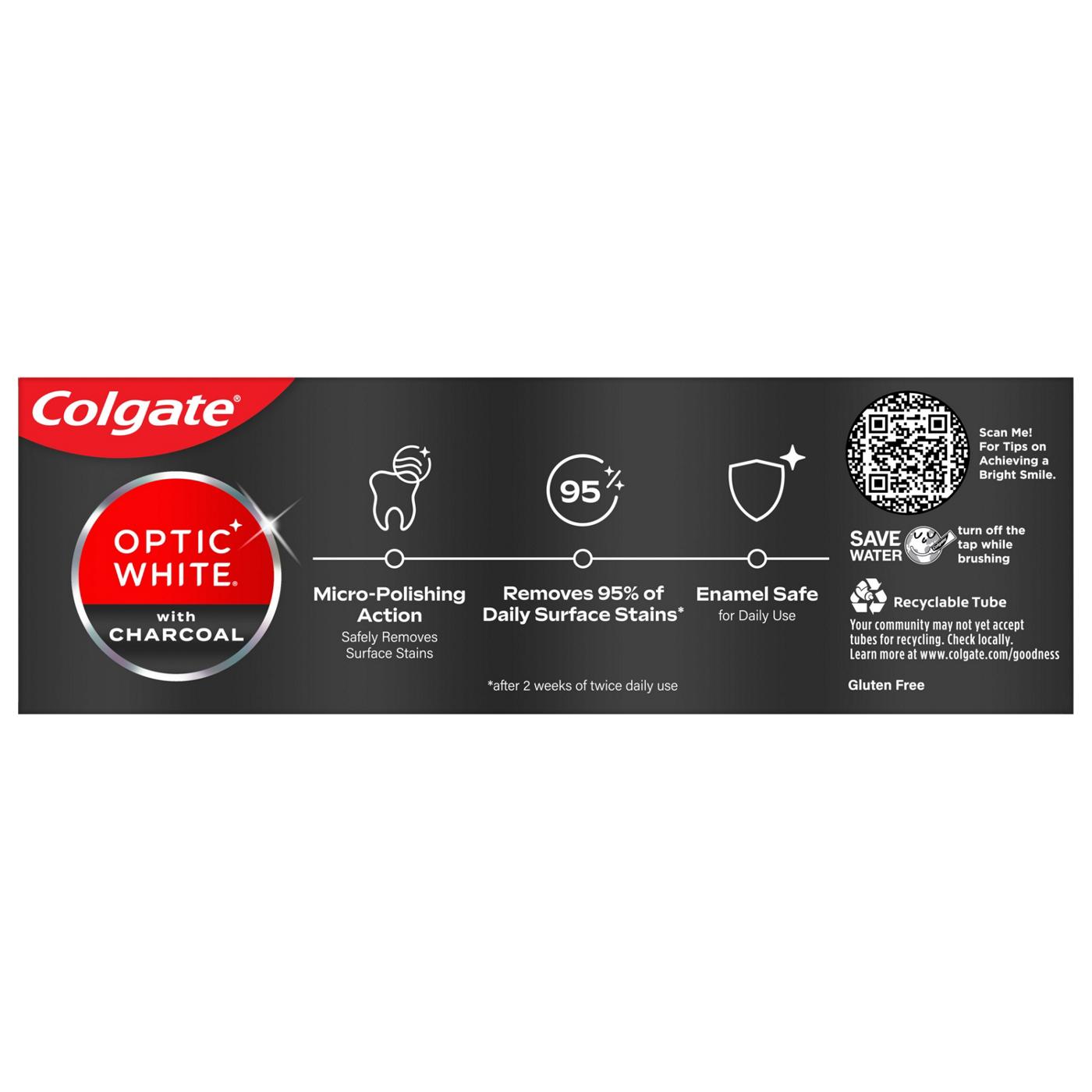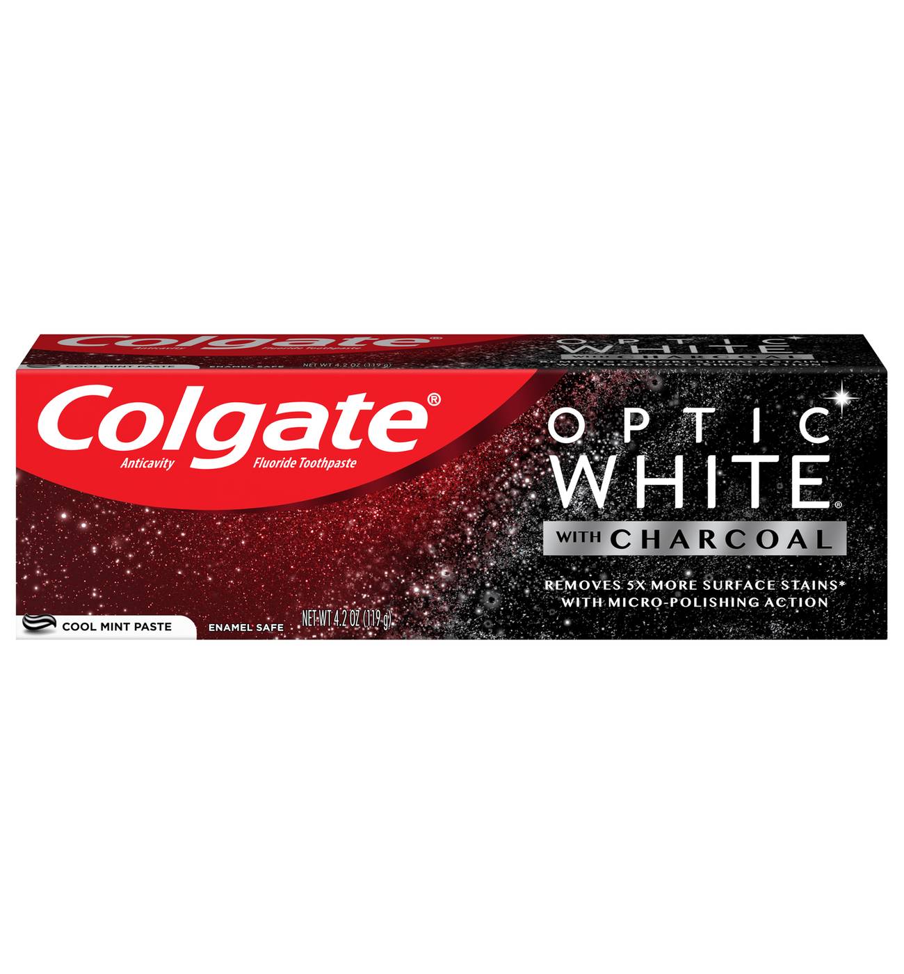 Colgate Optic White with Charcoal toothpaste is a stain removal whitening toothpaste with micro-polishing action to remove 5X more surface stains*. This Colgate Optic White toothpaste contains clinically proven technology that safely removes surface stains and helps prevent new stains from forming, so your teeth stay whiter longer. *vs. ordinary non whitening toothpaste, after 2 weeks of continued use