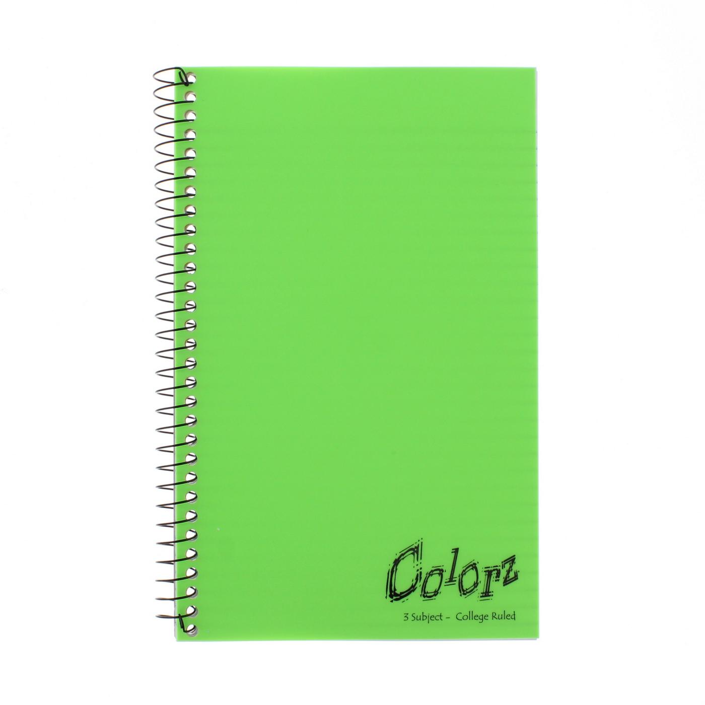 Colorz 3 Subject College Ruled Spiral Notebook, Colors May Vary