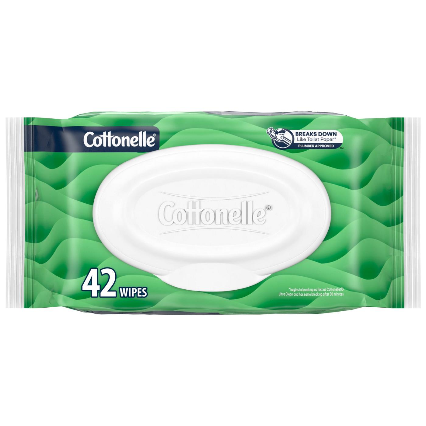Cottonelle GentlePlus Flushable Wet Wipes are 100% flushable, septic-safe, and break down like toilet paper*. They’re made with aloe, vitamin E, and chamomile. Our flushable wipes are designed to help soothe skin and provide a gentle, refreshing clean. Plus, Cottonelle GentlePlus wet wipes are hypoallergenic, dermatologist-tested, and made with no harsh chemicals. Each flip-top pack has 42 flushable wet wipes per pack with pull-apart sheets for easy dispensing. Cottonelle is FSC certified, supporting responsible forestry and only uses fibers that are 100% plant-based. For more ways to feel clean, pair Cottonelle flushable wipes with Cottonelle toilet paper. (*begins to break up as fast as Cottonelle Ultra Clean and has same break up after 30 minutes)• WHAT'S INCLUDED — 1 flip-top pack of Cottonelle GentlePlus Flushable Wet Wipes, 42 flushable wipes per pack; packaging may vary• GENTLE'S IN THE NAME — Each wet wipe is designed to help soothe skin and provide a gentle, refreshing clean• A REFRESHING CLEAN — Our disposable wipes are made with aloe, vitamin E, and chamomile to help you feel relaxed and refreshed• BREAKS DOWN LIKE TOILET PAPER* — Every flushable wipe breaks down like toilet paper, making them sewer- and septic-safe (*begins to break up as fast as Cottonelle Ultra Clean and has same break up after 30 minutes)• NO HARSH CHEMICALS — These hypoallergenic wipes are dermatologist-tested and free of MIT, parabens, and alcohol• FSC CERTIFIED — Cottonelle wipes only use paper from responsible sources• IT TAKES TWO — Flushable wipes and toilet paper are better together. Pair Cottonelle GentlePlus with Cottonelle Ultra Comfort for a complete clean