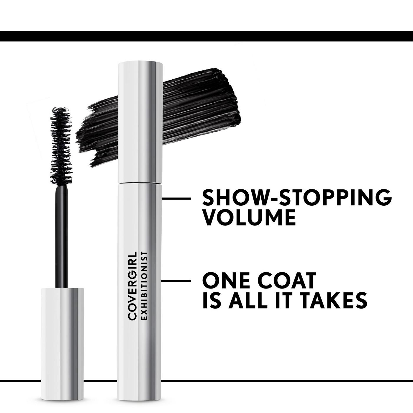 Let your lashes steal the show with Covergirl Exhibitionist Mascara. This volumizing mascara glides on smooth to give you bold, thick lashes that stand out. Its quick and easy to applyjust one coat is all it takes for longer, defined lashes. This formula keeps lashes soft with no flaking or smudging, so your gorgeous eyes stay at the center of attention. Pro-Tip: Apply Covergirl Exhibitionist Mascara Primer beforehand for an extra boost of volume.