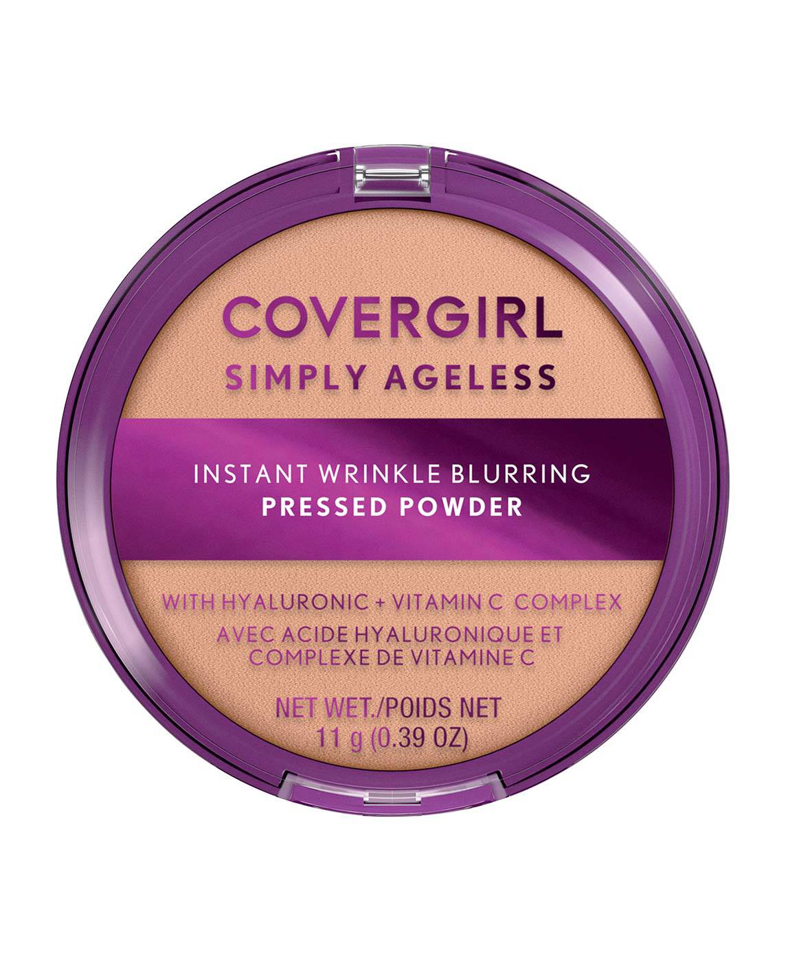Instantly reduce the look of fine lines and wrinkles with Covergirl Simply Ageless Instant Wrinkle Blurring Pressed Powder. This hydrating face powder goes on creamy and does not cake or flake for a flawless finish. The pressed makeup powder is formulated with hyaluronic acid and vitamin C to refresh the complexion and even out skin tone. Perfect for on-the-go touch-ups, the matte pressed powder makes pores less visible and floats over fine lines and wrinkles to deliver youthful-looking skin. Pro-tip: Use this pressed powder to set your Simply Ageless Foundation!