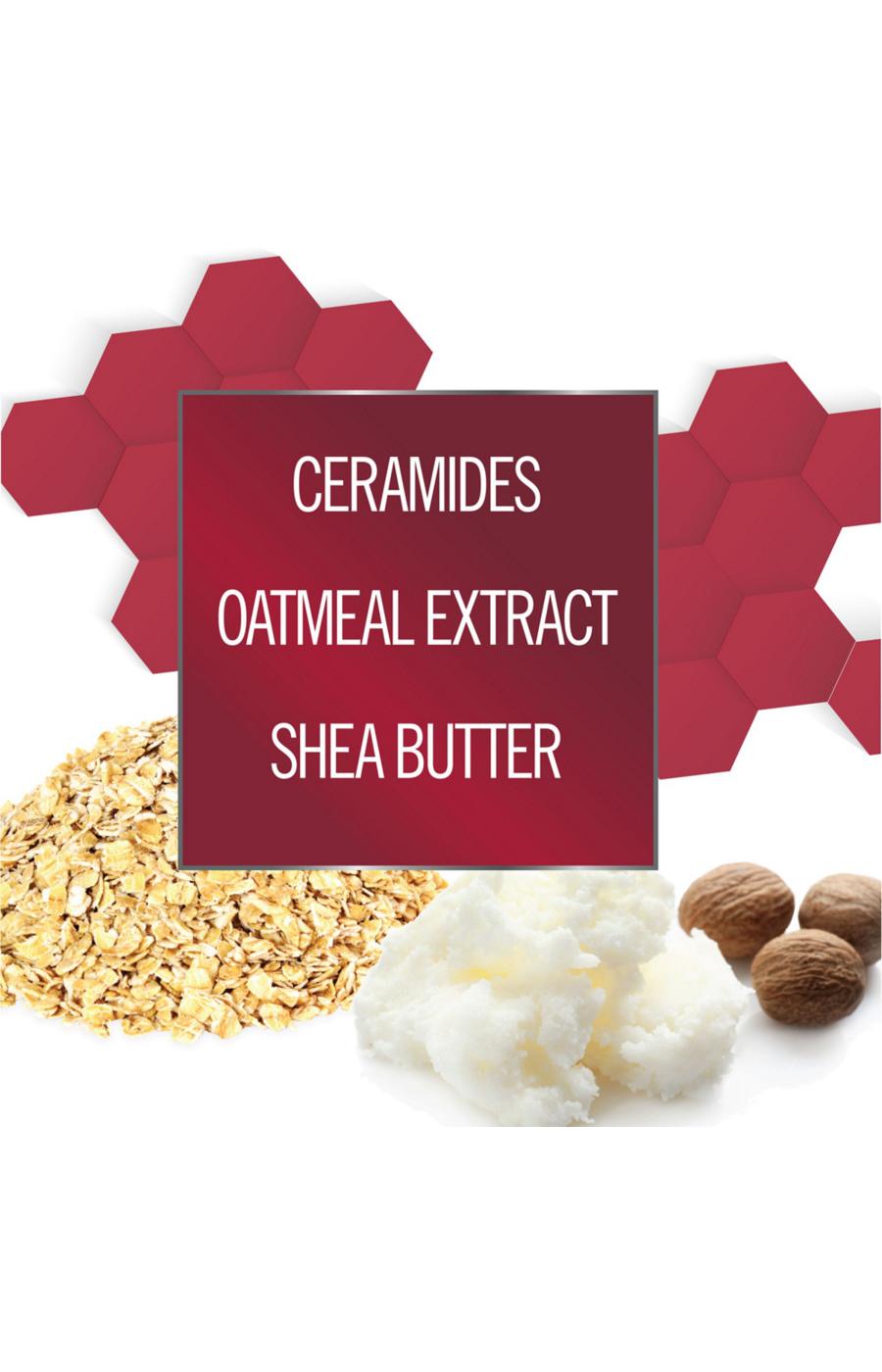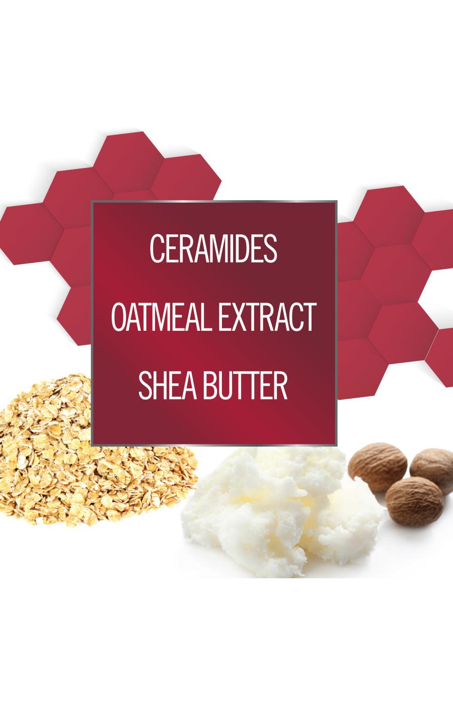 Water, Glycerin, Petrolatum, Cetearyl Alcohol, Dimethicone, Behentrimonium Chloride, Isopropyl Palmitate, Cetyl-PG Hydroxyethyl Palmitamide, Butylene Glycol, Isopropyl Alcohol, Hydroxyacetophenone, Benzalkonium Chloride, Citrus Aurantium Dulcis (Orange) Peel Oil, Avena Sativa (Oat) Meal Extract, Eucalyptus Globulus Leaf Extract, Sodium Lauroyl Lactylate, Ceramide Np, Ceramide Ap, Phytosphingosine, Cholesterol, Xanthan Gum, Ethylhexylglycerin, Polyacrylic Acid, Ceramide Eop, Limonene.