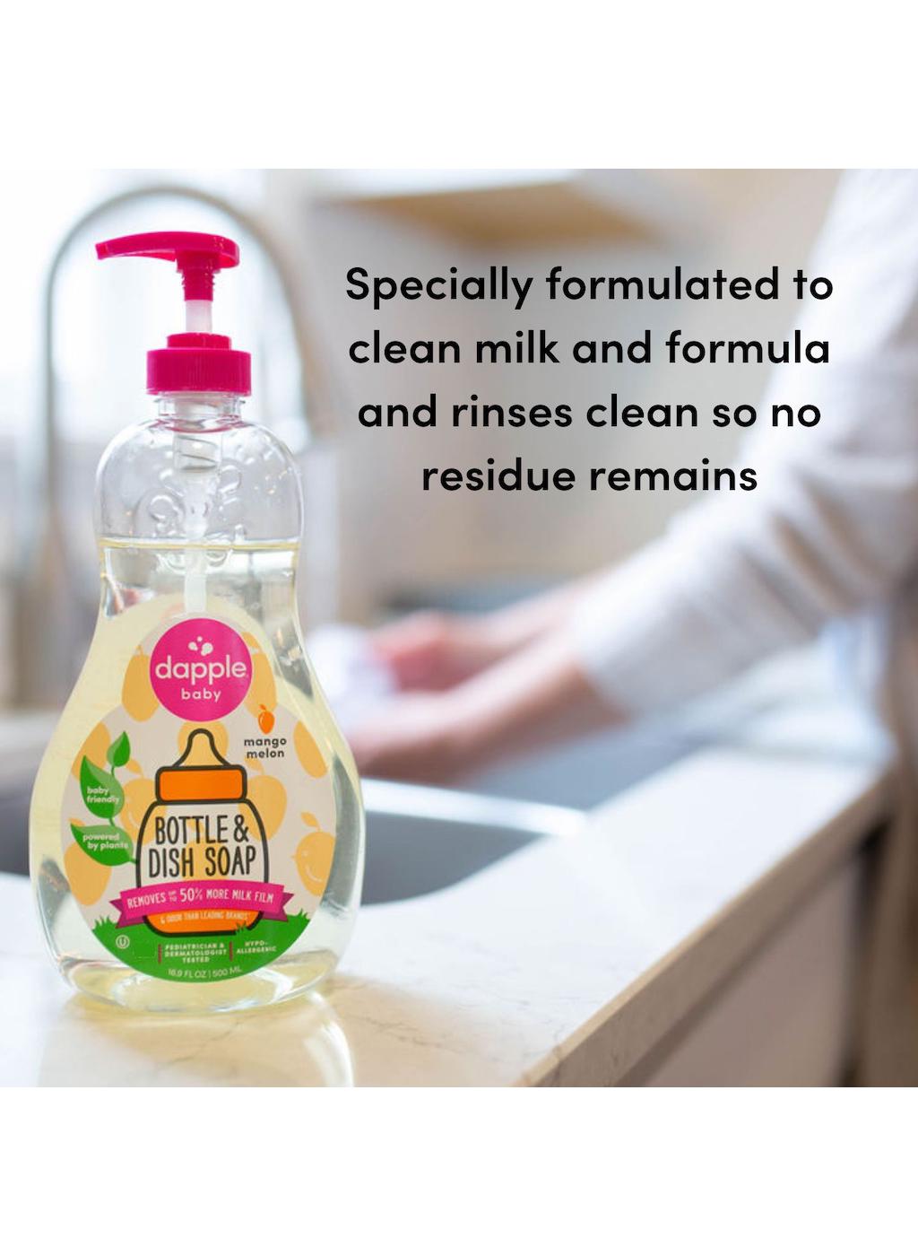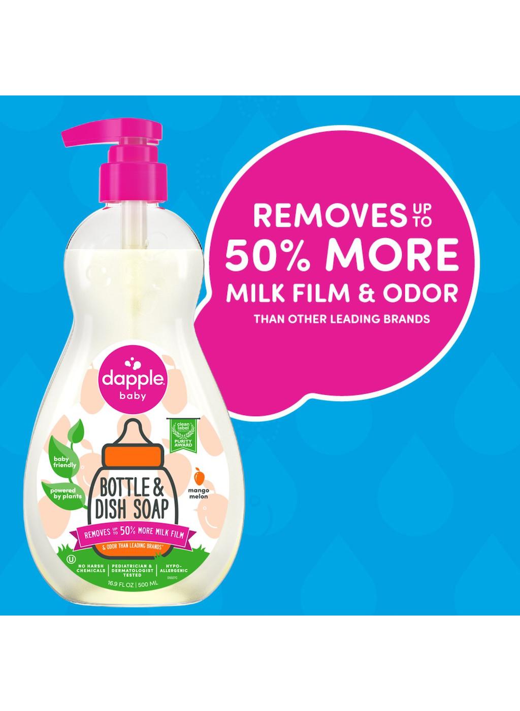 Made with plant-based ingredients and none of the things moms worry about, Dapple Bottle & Dish Soap is specifically formulated to remove the fats, proteins, and carbs left behind by breast milk and formula.