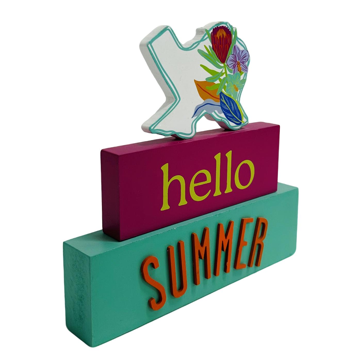 Add a playful touch to your summer decor with the Destination Holiday 8-inch Hello Summer Texas Table Décor, perfect for a fun and festive display.