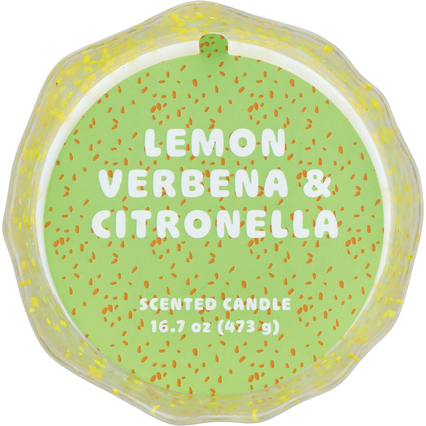 Add a playful touch to your summer decor with the Destination Holiday 16.7-ounce Lemon Verbena & Citronella Scented Spotted Glass Candle, perfect for adding a refreshing and stylish touch to any room.