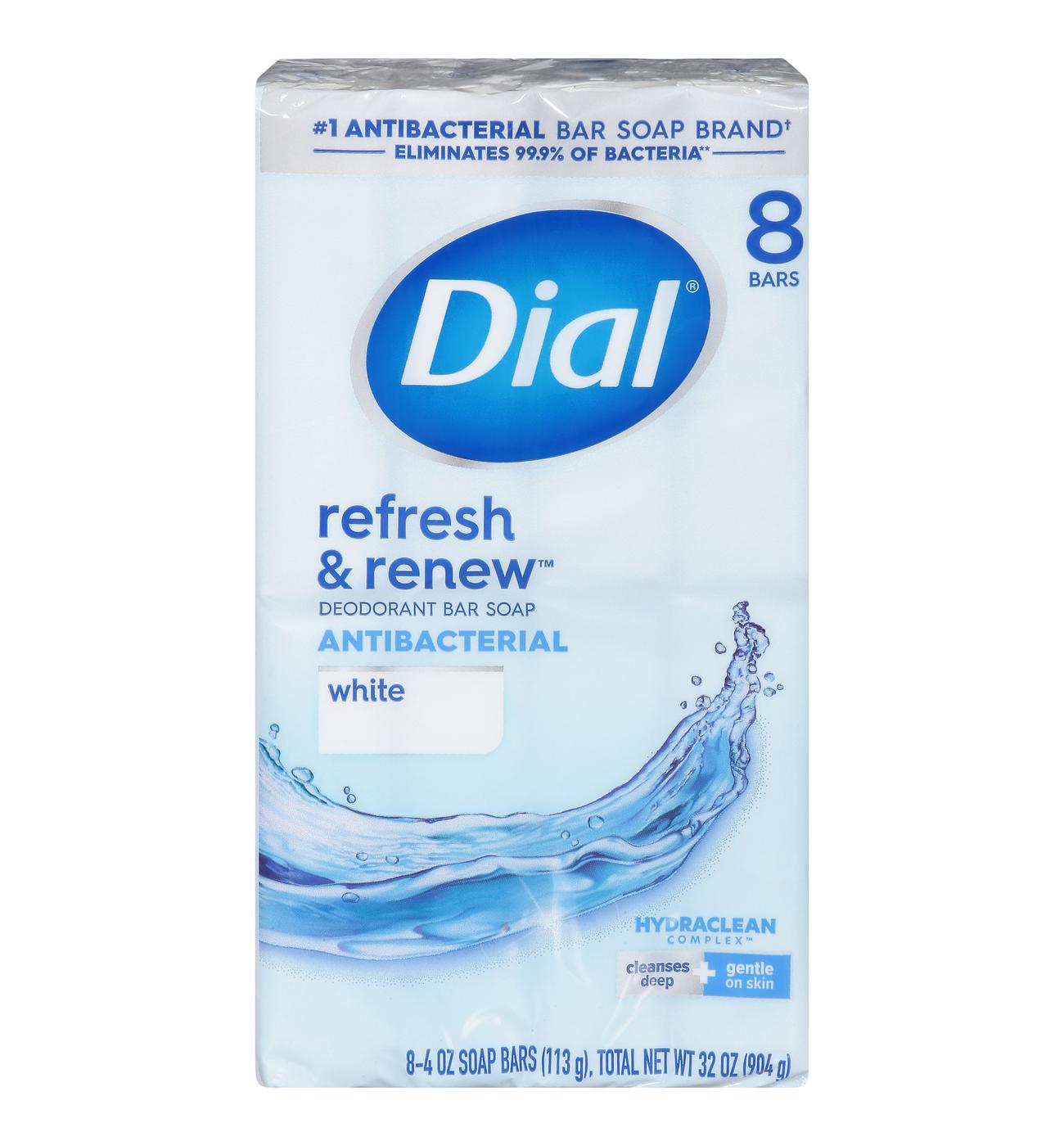 Dial Antibacterial Refresh & Renew Bar Soap - White