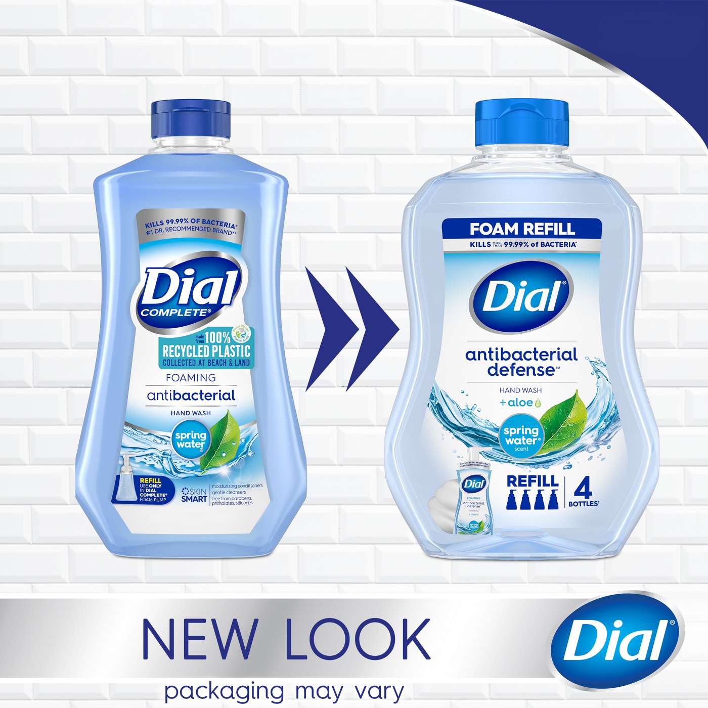 Enjoy the fresh scent of Dial Antibacterial Defense Spring Water foaming hand wash refill. Includes enough product to refill 4 Dial foaming hand wash bottles†. This formula contains aloe vera and kills more than 99.99% of bacteria* while being gentle on skin, leaving it feeling soft, smooth, & healthy. The #1 Doctor recommended antibacterial hand soap brand is dermatologist tested & approved as cruelty free under the Leaping Bunny program. This package contains 30 fluid ounces of Dial hand wash. *Encountered in household settings†Refills 4 Dial Foaming Hand Wash 7.5 fl oz Bottles • Kills more than 99.99% of bacteria encountered in household settings.• This foaming hand wash refill includes enough product to refill 4 Dial foaming hand wash bottles†. †Refills 4 Dial Foaming Hand Wash• #1 Doctor Recommended antibacterial hand soap brand.• This gentle pH balanced formula contains aloe vera and is dermatologist tested and cruelty free approved under the Leaping Bunny program.• FREE FROM:-Sodium lauryl sulfate/Sodium laureth sulfate-Parabens-Phthalates-Silicones