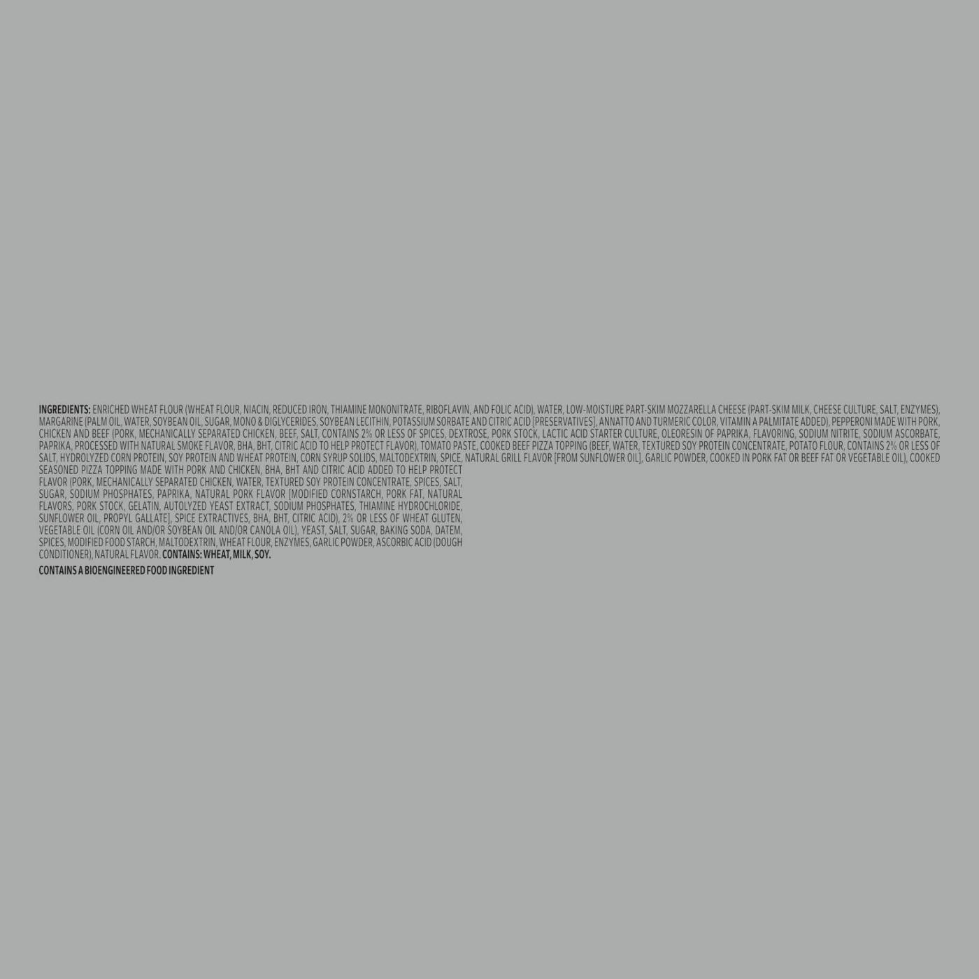 Enjoy the flaky, buttery layers of a croissant and your favorite meat lover’s pizza toppings with the DiGiorno® Three Meat Croissant Crust Pizza. This frozen pizza crust turns golden brown, airy, and tender like the inside of a freshly baked croissant. Every croissant pizza slice is covered in deliciously zesty tomato sauce and real mozzarella cheese. To top this DiGiorno® frozen pizza off, we’ve added a flavorful trio of chewy pepperoni, seasoned sausage pieces, and savory beef crumble. Keep this pizza frozen until you’re ready to enjoy, cook at 400°F for twenty minutes, let stand, then grab a slice! And if anyone asks -- it’s not delivery, it’s DiGiorno® pizza.A NEW PIZZA STYLE: Add another layer to pizza night! This DiGiorno® Three Meat Croissant Crust Pizza has zesty tomato sauce, mozzarella cheese, a trio of meat toppings, and a new croissant-style crustCROISSANT PIZZA CRUST: All the flaky and buttery layers you love in a bakery croissant, now in a DiGiorno® frozen pizza! Watch the layers rise and turn to an airy and tender croissant pizza crustMEAT THE TOPPINGS: Chewy pepperoni slices, seasoned sausage pieces, and a savory beef crumble make this three meat pizza great for anyone who loves a classic meat lover’s pizzaREADY IN MINUTES: Toss this DiGiorno® frozen pizza onto the center oven rack, bake for twenty minutes at 400°F then let stand for up to five minutes before slicing and servingSHARE A SLICE: Includes one full-sized frozen croissant pizza with real cheese, tomato sauce, and all your favorite meat lover’s pizza toppings to share with friends or family