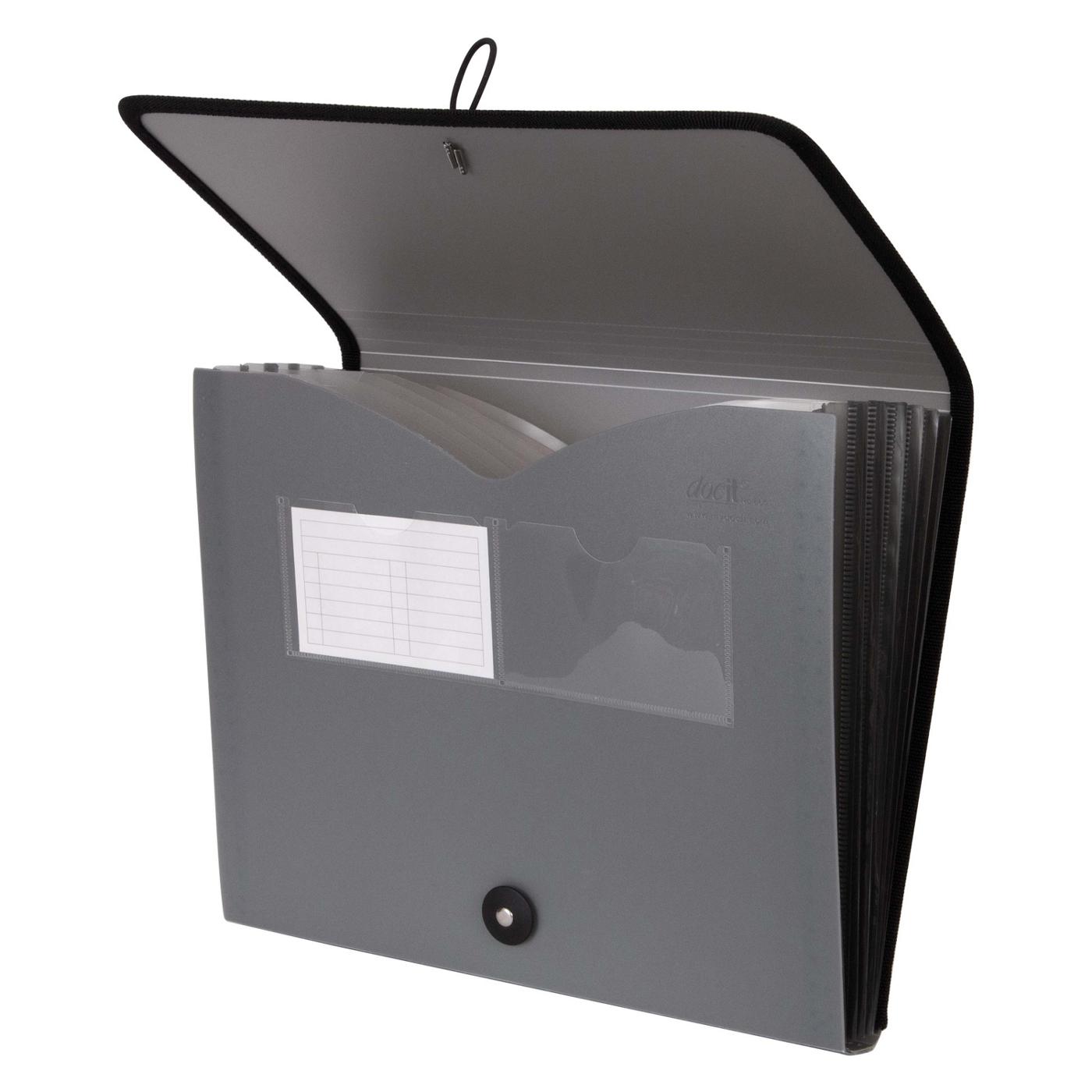 DocIt polypropylene organization and filing products offer a variety of options to organize all the paper in your life. Whether you are in school, at work or just organizing your home, DocIt has the solution for you. The DocIt 7 pocket expanding file is great for organizing receipts, storing coupons, checks, invoices and more. Made from premium, durable polypropylene, this expanding file organizer will hold up on all those trips to the office or school. Each accordion file folder includes preprinted tabs to get you started or you can write your own categories on the reverse, blank side. The button and elastic closure ensures that your documents will stay put. - Available in Lime, Pink, Blue or Gray